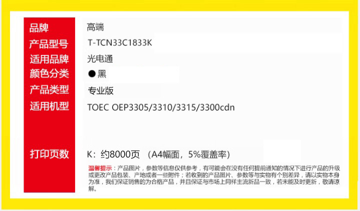 高端T-TCN33C1833K粉盒适用光电通OEP3300/3305/3310/3315CDN 支 黑色