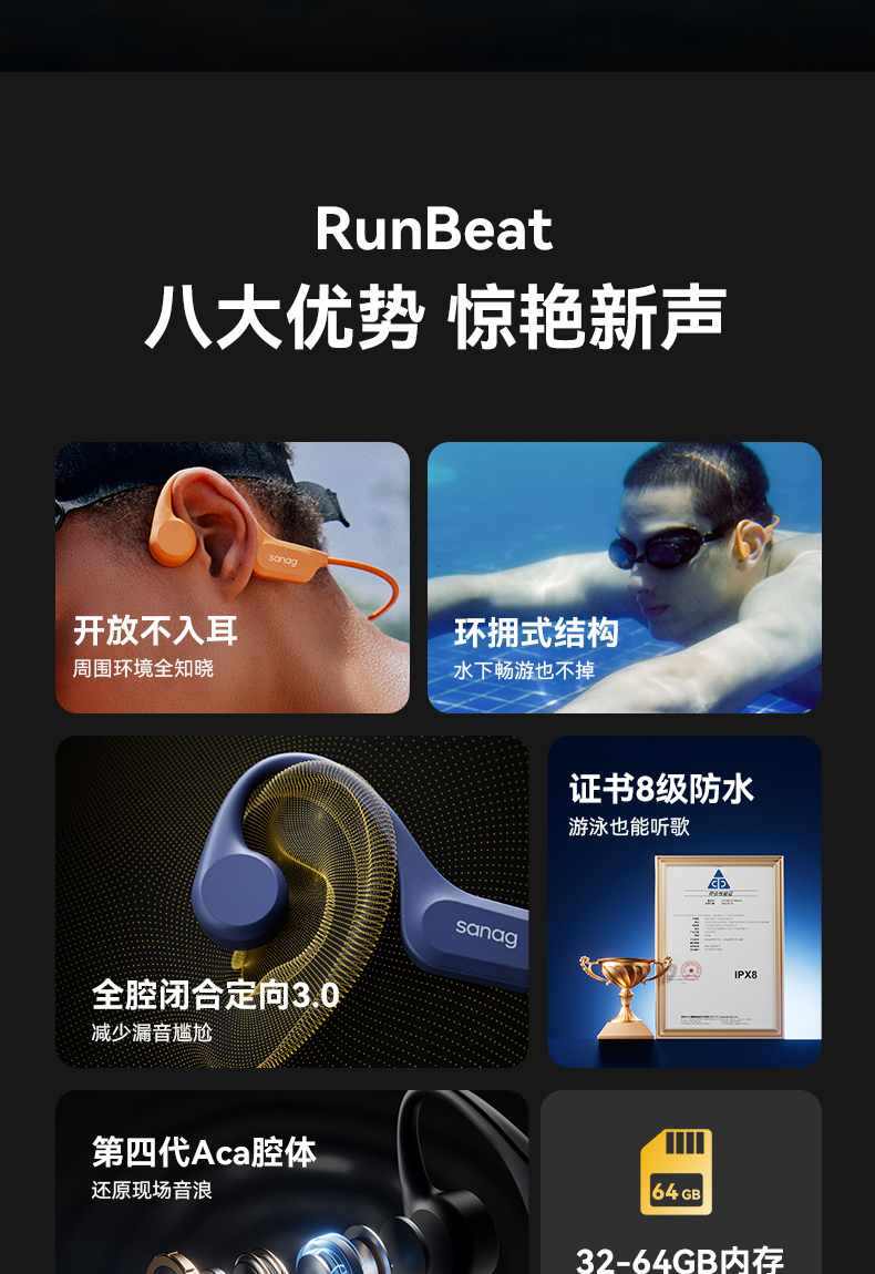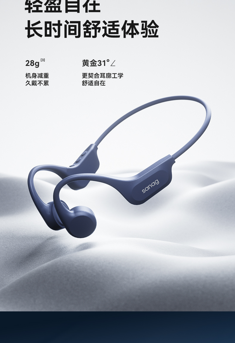 SANAG塞那{央视甄选}骨传导蓝牙耳机开放式游泳耳跑步骑行B6032G(单位:个) 黑色