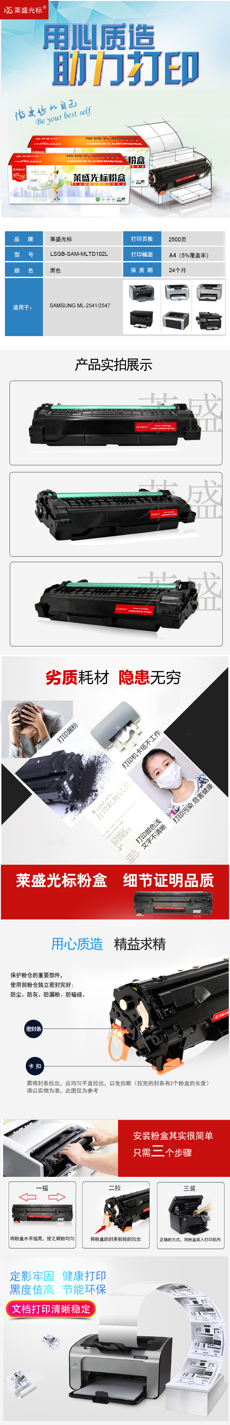 莱盛光标 LSGB-SAM-MLTD102L 激光打印机粉盒 全新 有芯片 2.5K 黑色