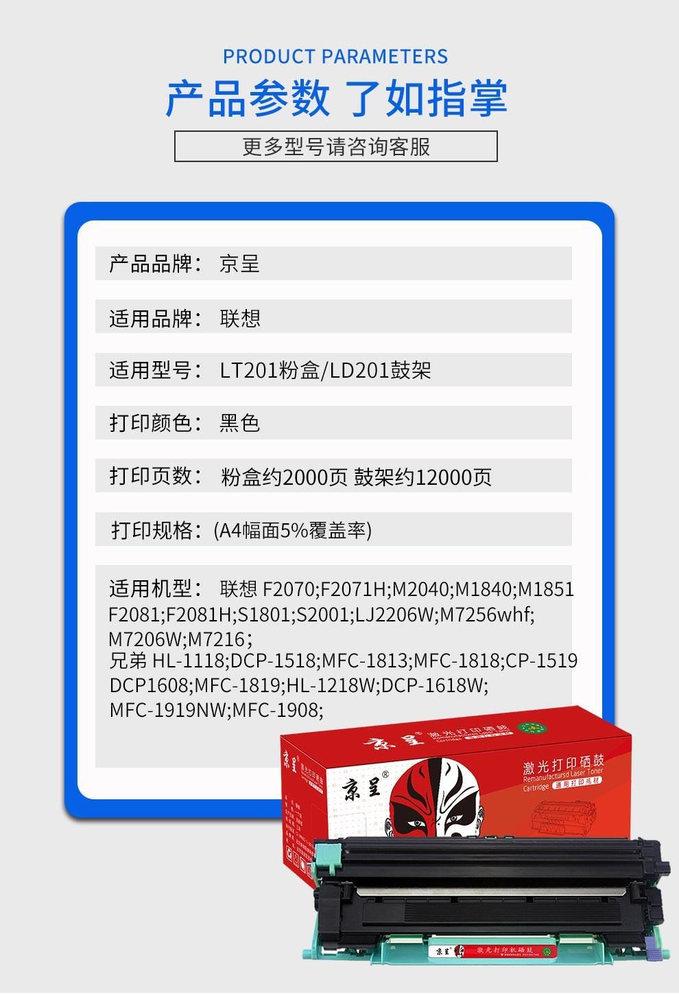 京呈LT201适用M7206联想M7206W硒鼓M2051 1851墨粉7216粉盒LJ2205墨盒 碳粉-4瓶装