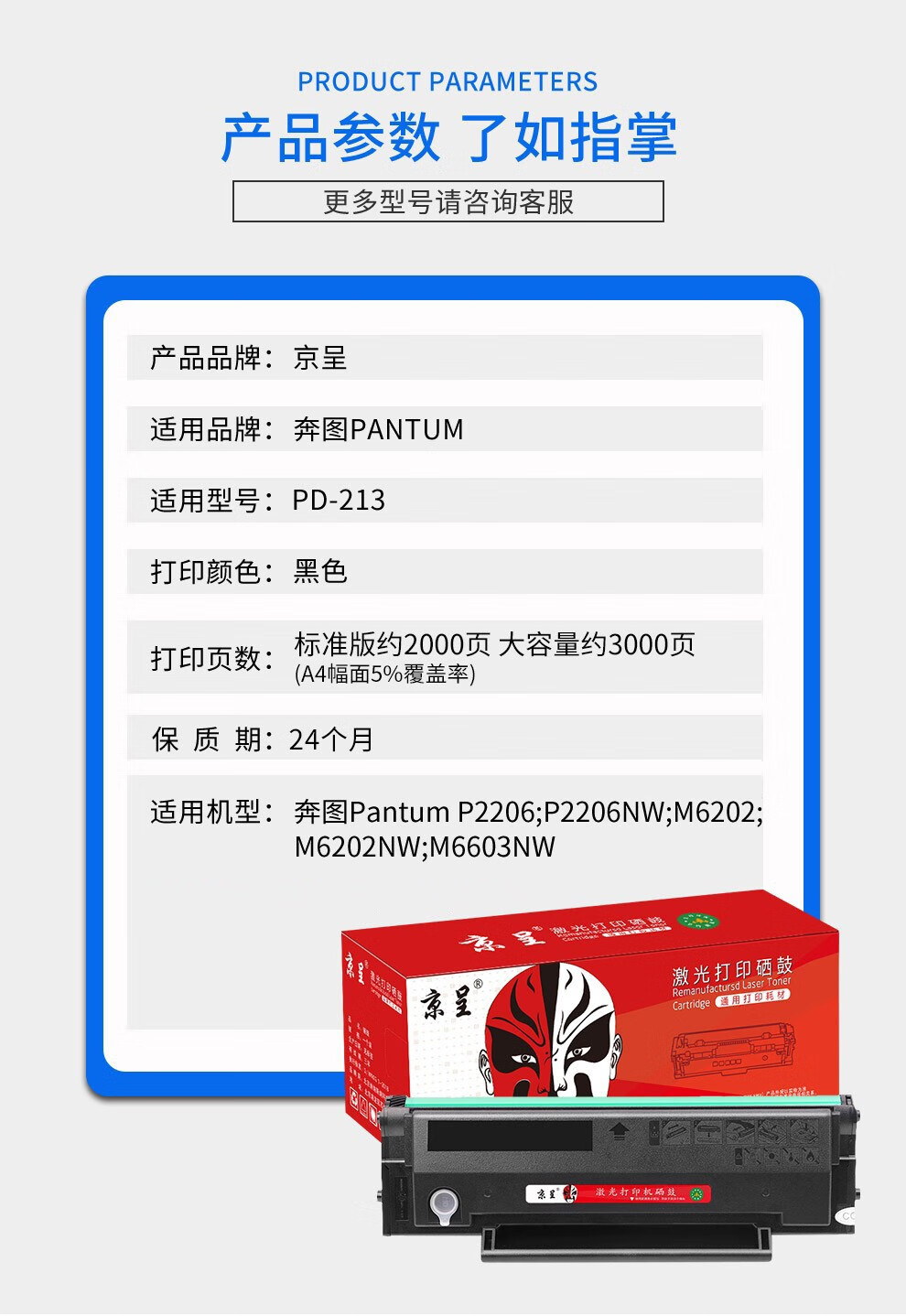 京呈PD213硒鼓适用奔图PANTUM P2206NW墨盒M6202NW硒鼓易加粉M6603NW墨粉 PD-213黑色碳粉 4瓶装