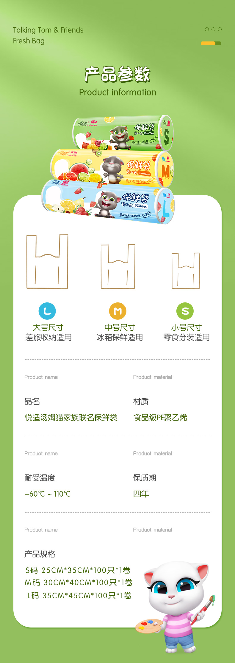 悦适/h'yeas DJBC100+DJBD100+DJBN100 S码*100+M码*100+L码*100 保鲜袋 白色(单位:组)