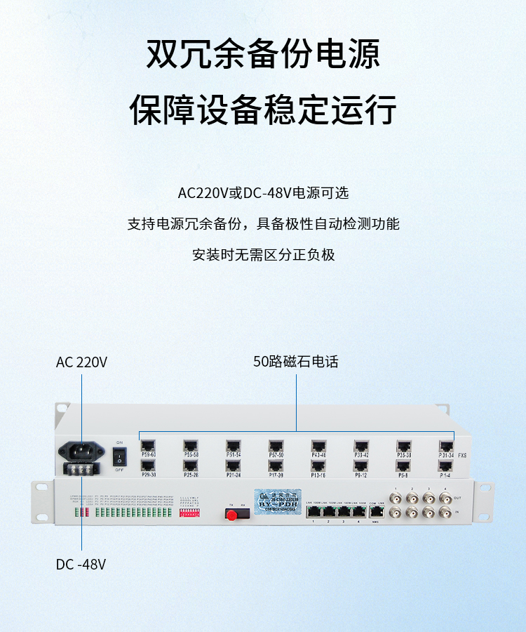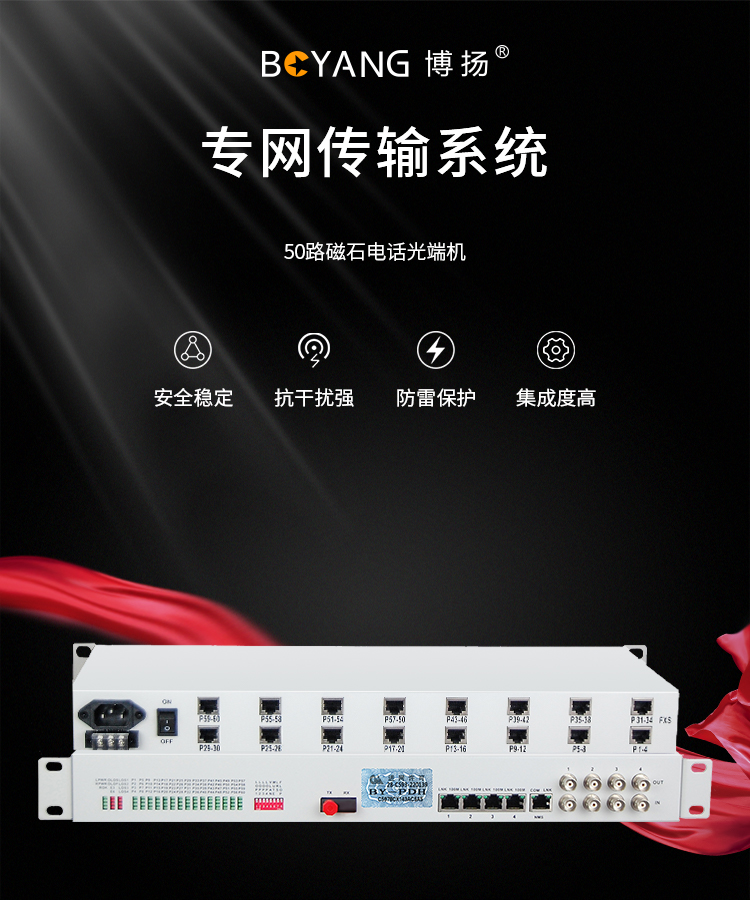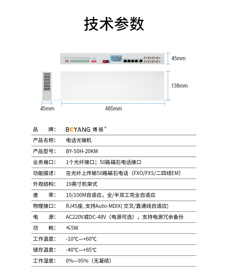 博扬 50路磁石电话 单纤20km 机架式单电源 1对价 BY-50H-20KM 白色