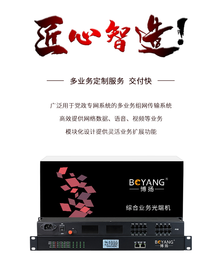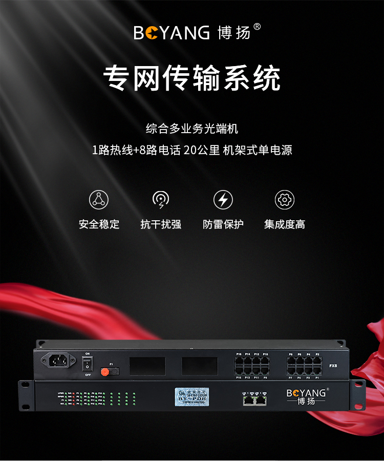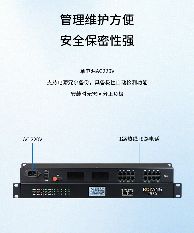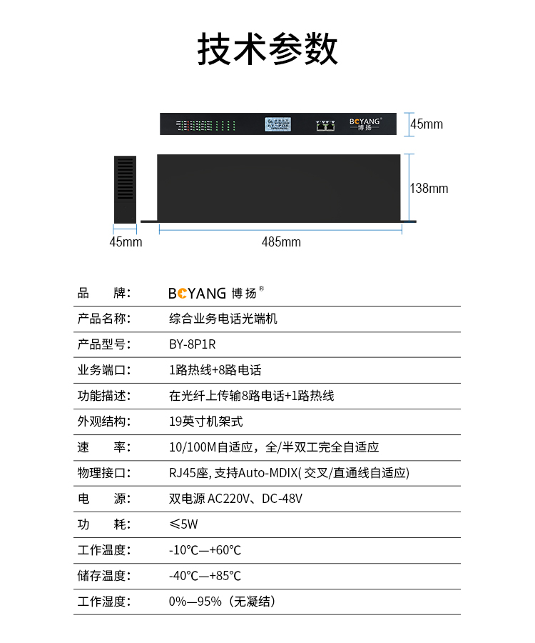博扬 综合业务电话光端机 1路热线+8路电话 20公里 机架式 1对价 BY-8P1R 白色