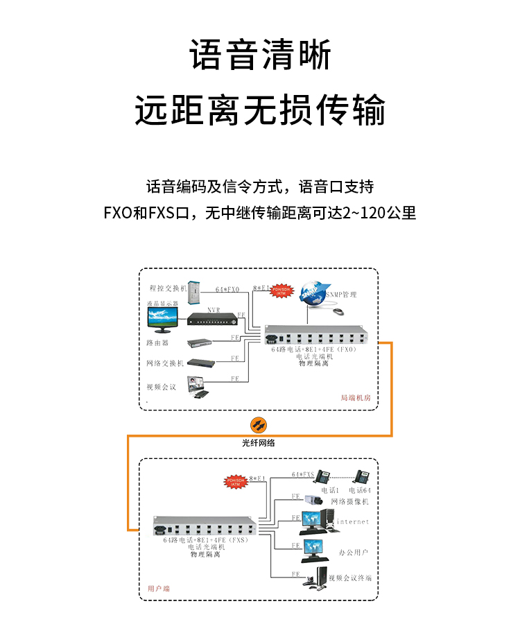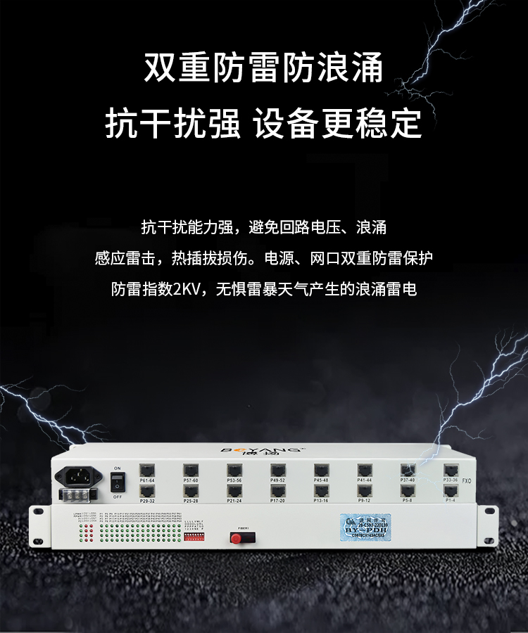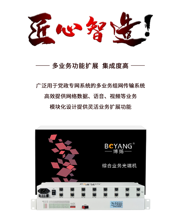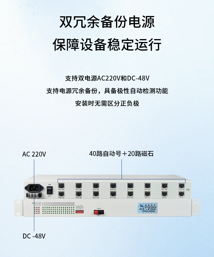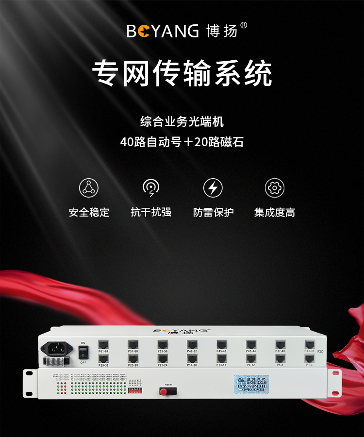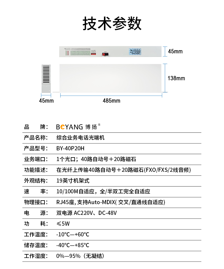 博扬 综合业务光端机 40路自动号+20路磁石 单纤20km 机架式单电源 1对价 BY-40P20 白色