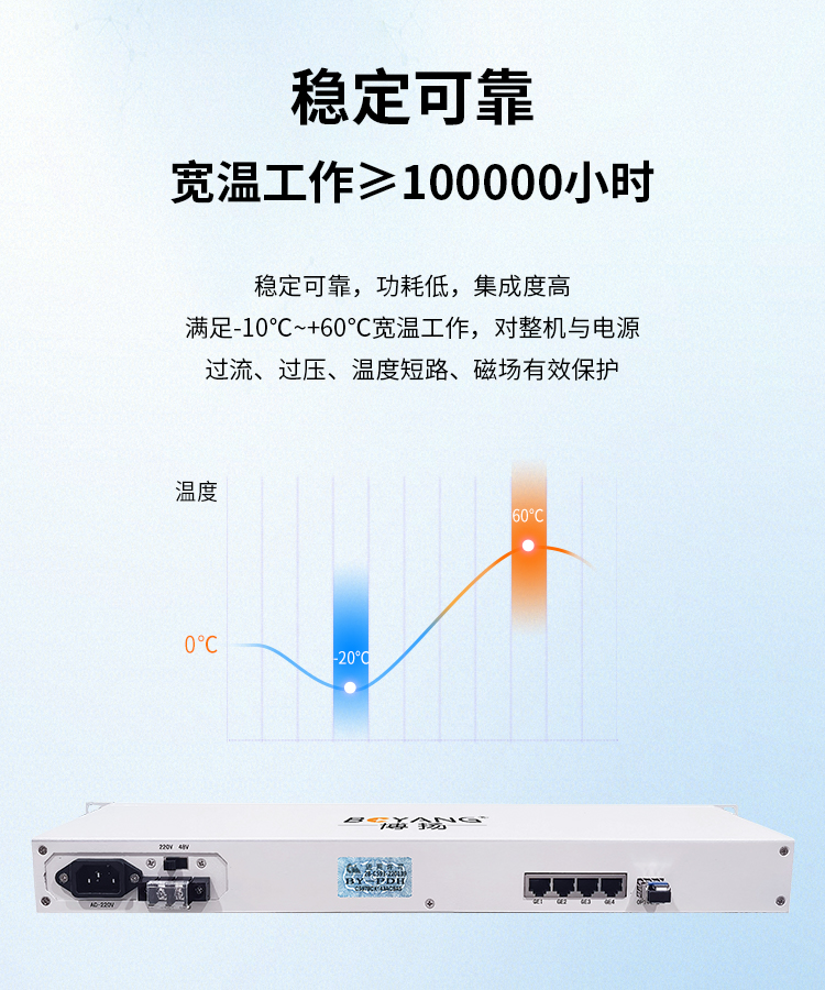 博扬 4路千兆物理隔离光端机 万兆单纤LC20km 1万兆光4千兆电隔离光电转换器 一对机架式单电源 白色