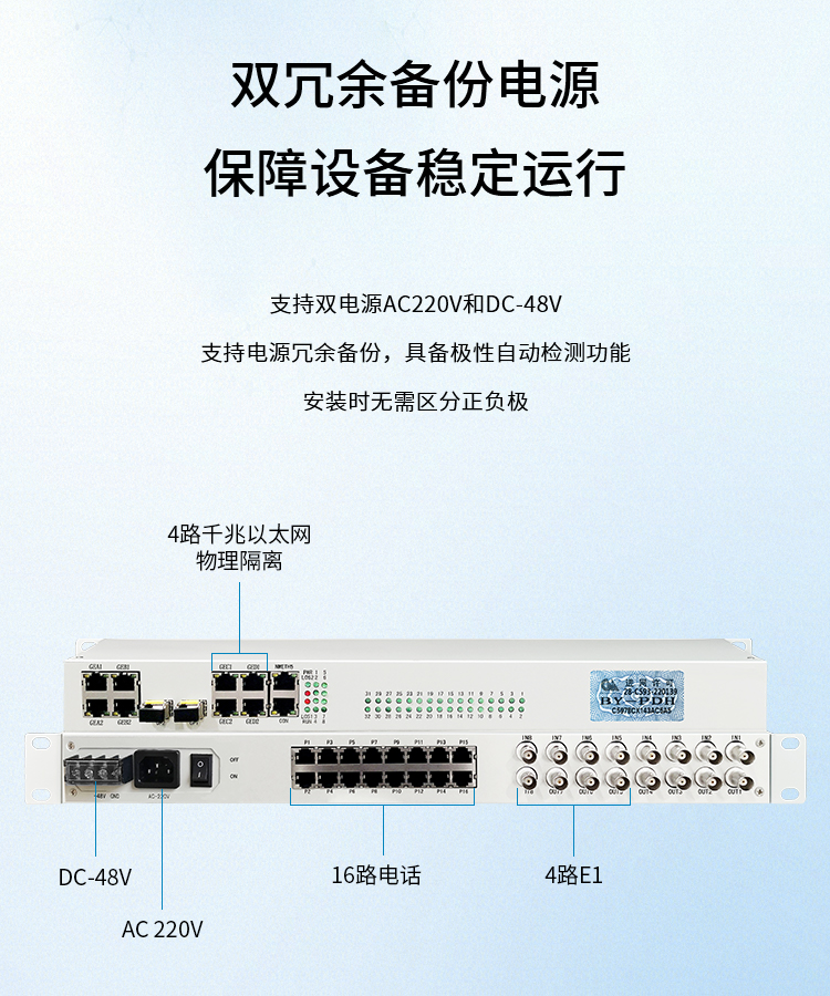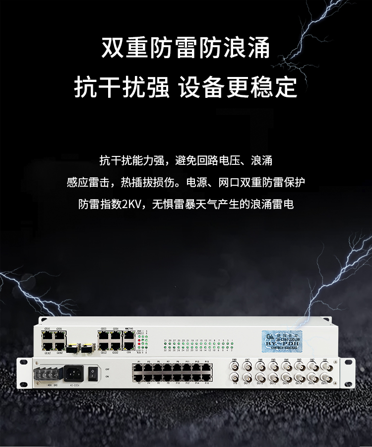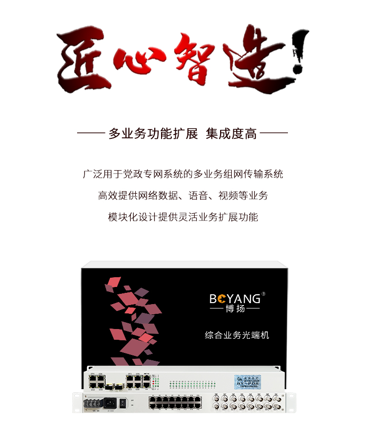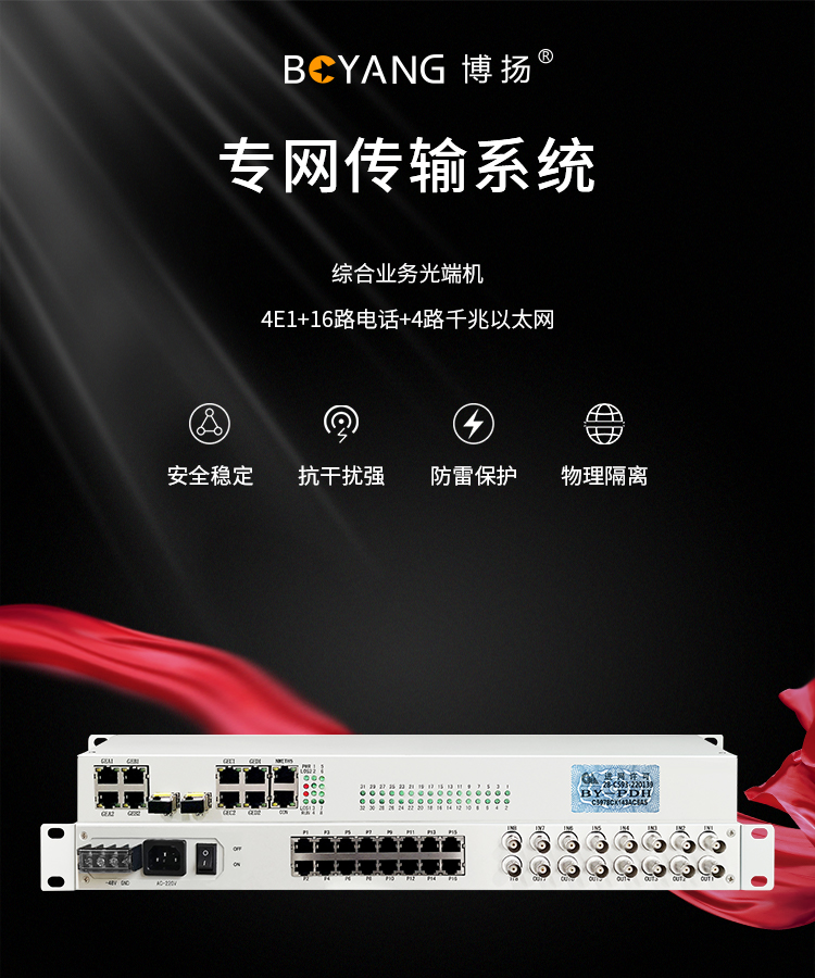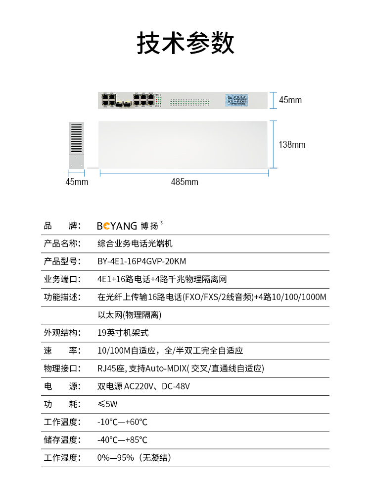 博扬 综合业务电话光端机 4E1+16路电话+4路千兆物理隔离网 单纤20km LC 机架式 1对价 白色