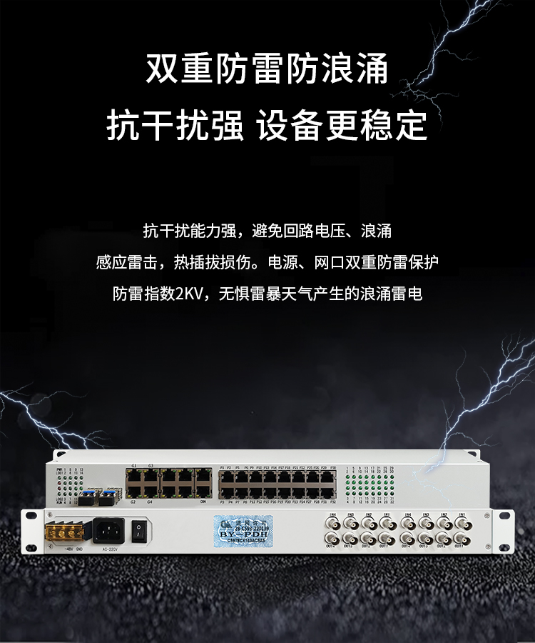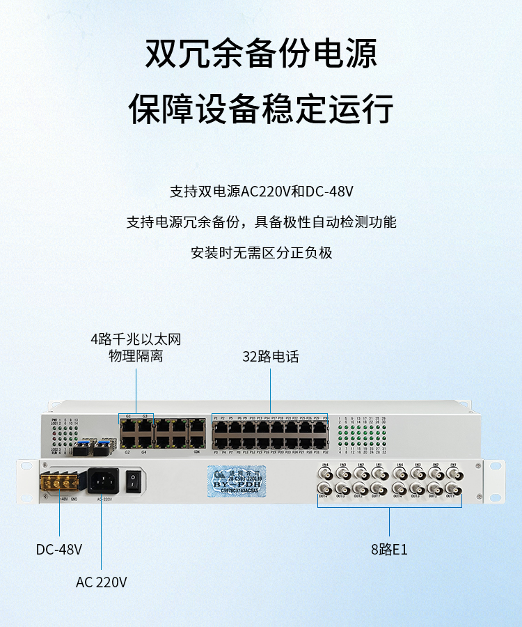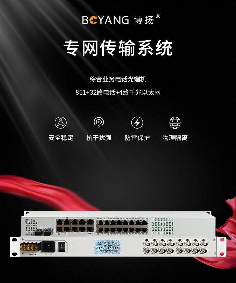 博扬 综合业务电话光端机 8E1+32路电话+4路千兆物理隔离网 单纤20km LC 机架式 1对价 白色