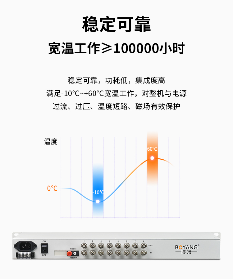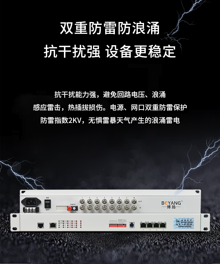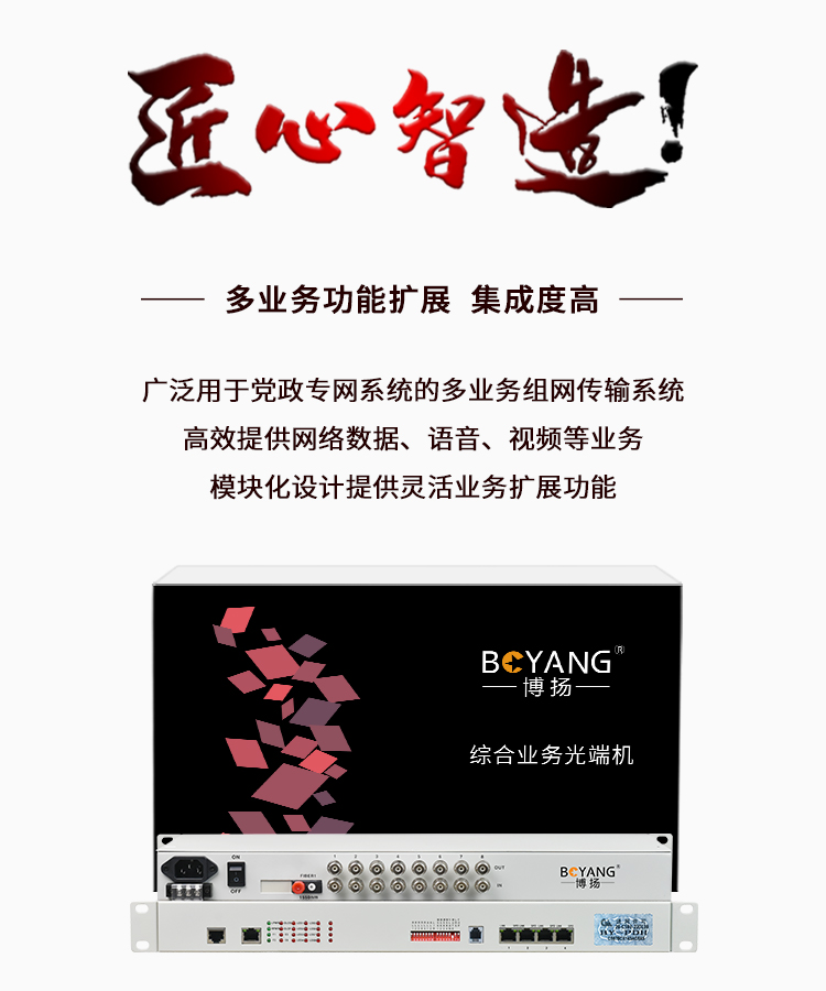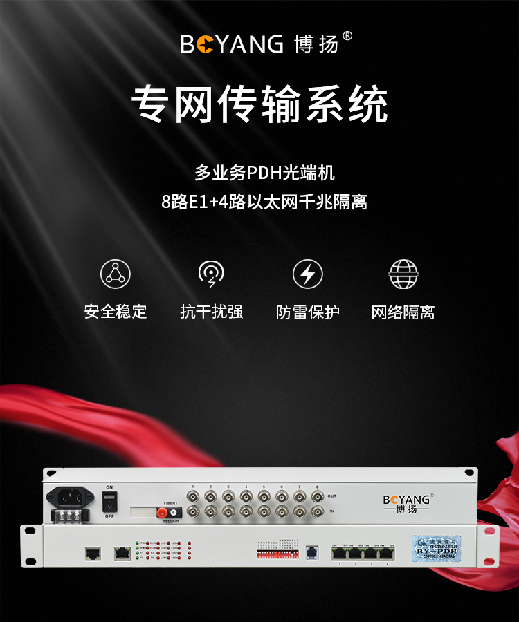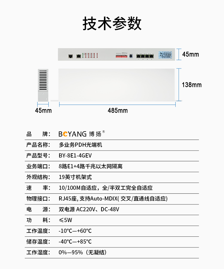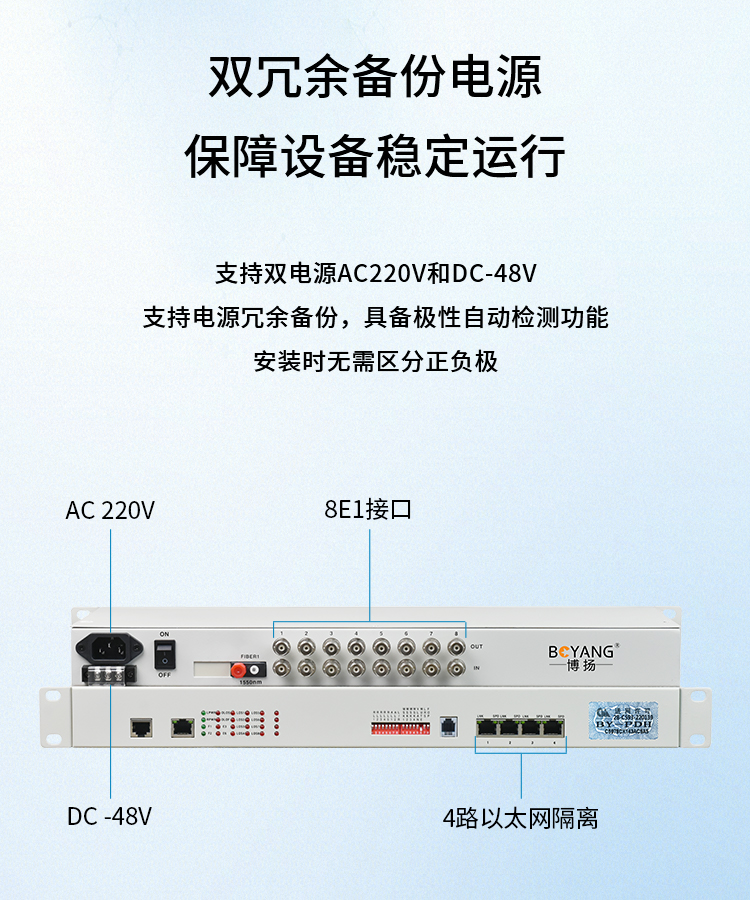 博扬 PDH光端机8E1 8路2M+4路以太网千兆隔离 FC单纤20公里 机架式 1对价 白色