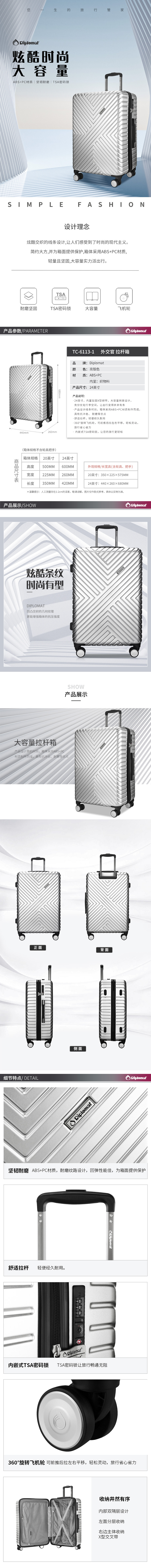 Diplomat外交官拉杆箱TC-6113(单位:个) 亮银色 24寸