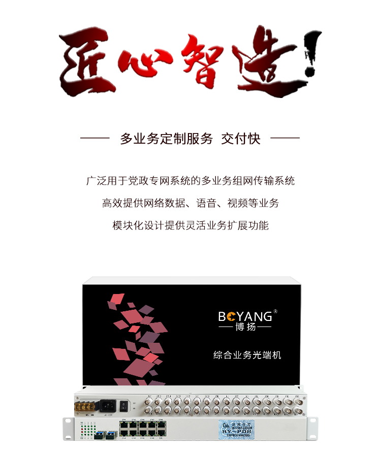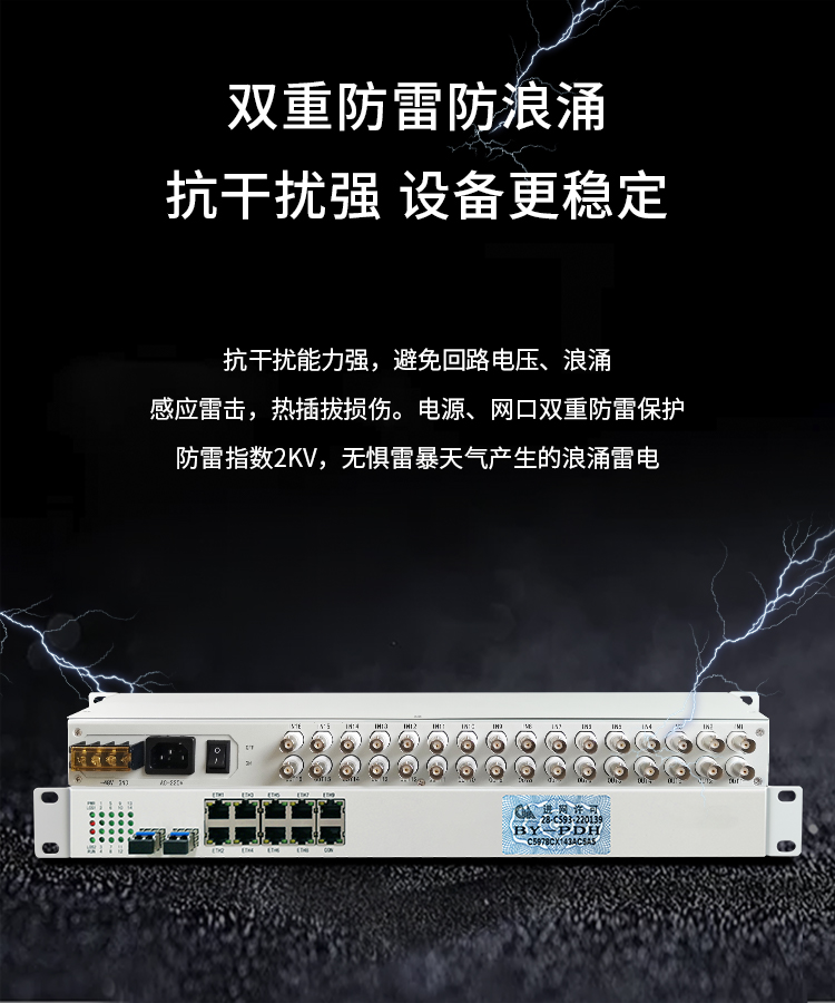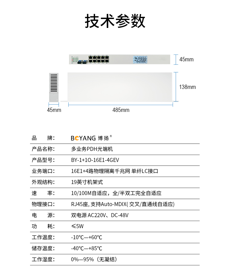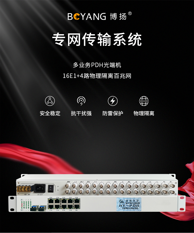 博扬 PDH光端机 16E1+4路物理隔离百兆网 单纤LC120KM SFP1+1保护 满配光模块 白色