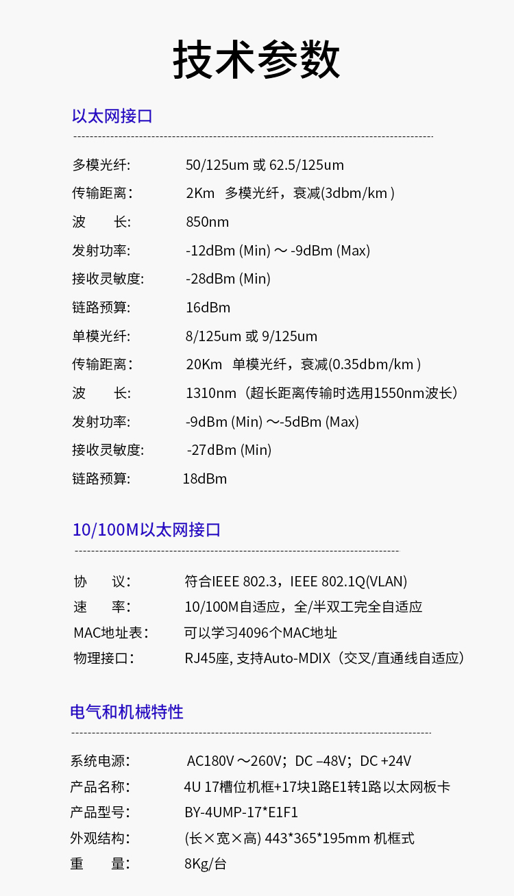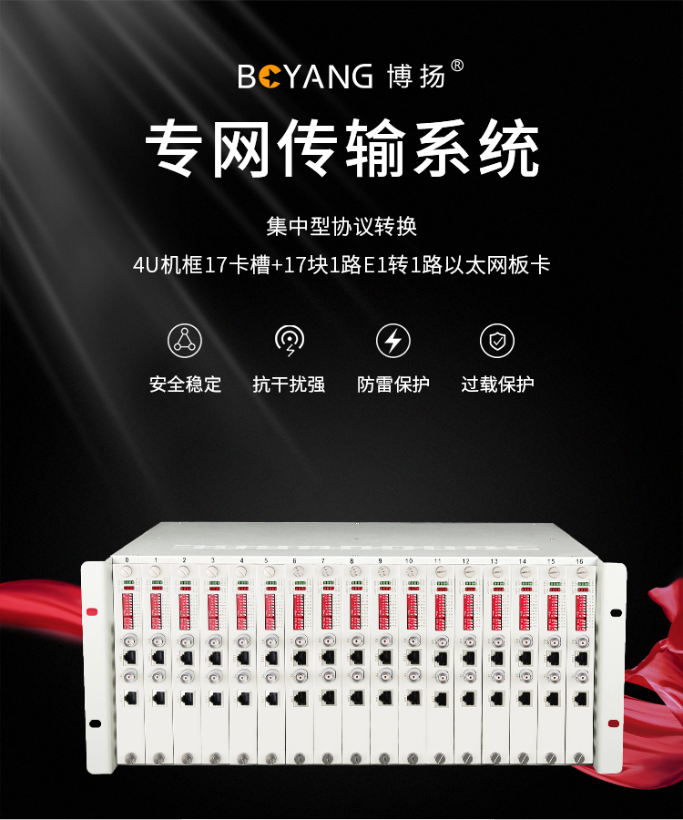博扬 4U机框 17卡槽 配17块1路E1转1路以太网板卡 机架式双电源 BY-4UMP-17*E1 白色