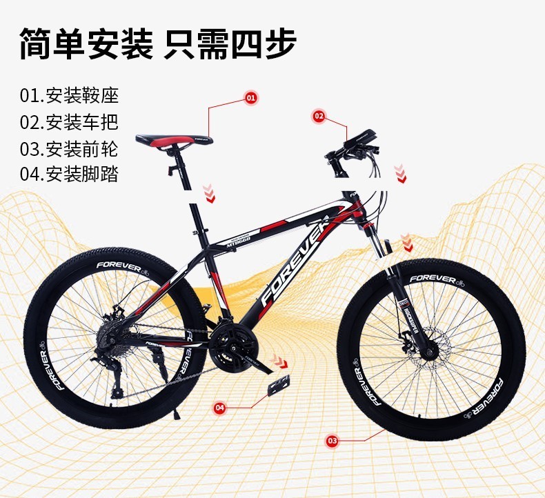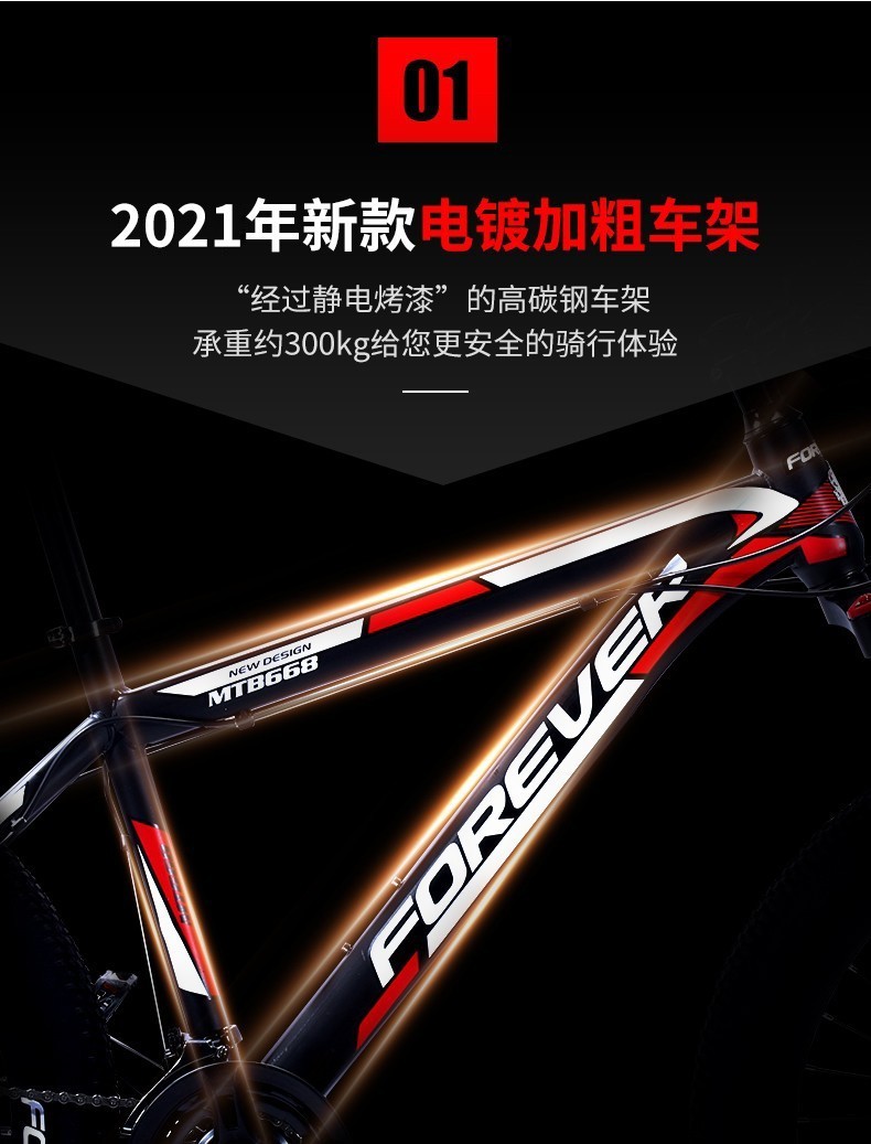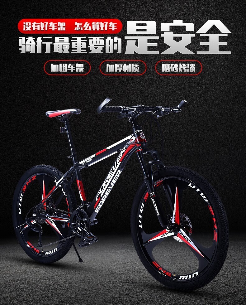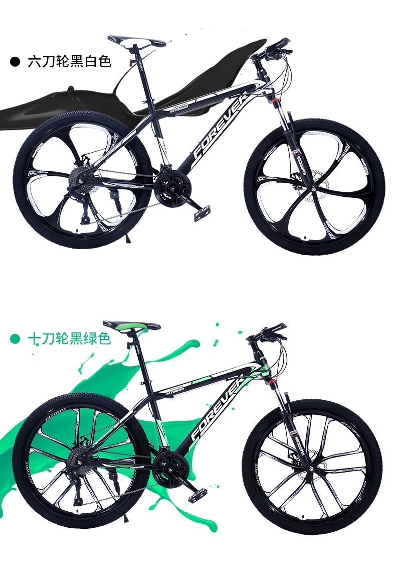 永久(FOREVER) 自行车山地车单车轻便减震学生城市休闲户外 顶配版(辐条轮)21速26英寸 黑绿色
