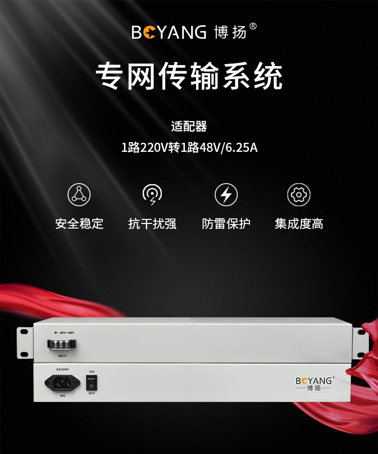 博扬 适配器 1路220V转1路48V/6.25A 机架式 1台价 BY-ATD48V6.25A 白色
