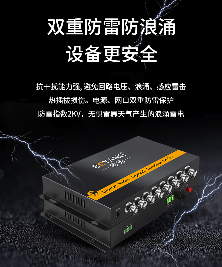 博扬(BOYANG)模拟视频光端机8路视频+1路485反向数据 光纤收发器延长器 单纤单模FC接口 黑色