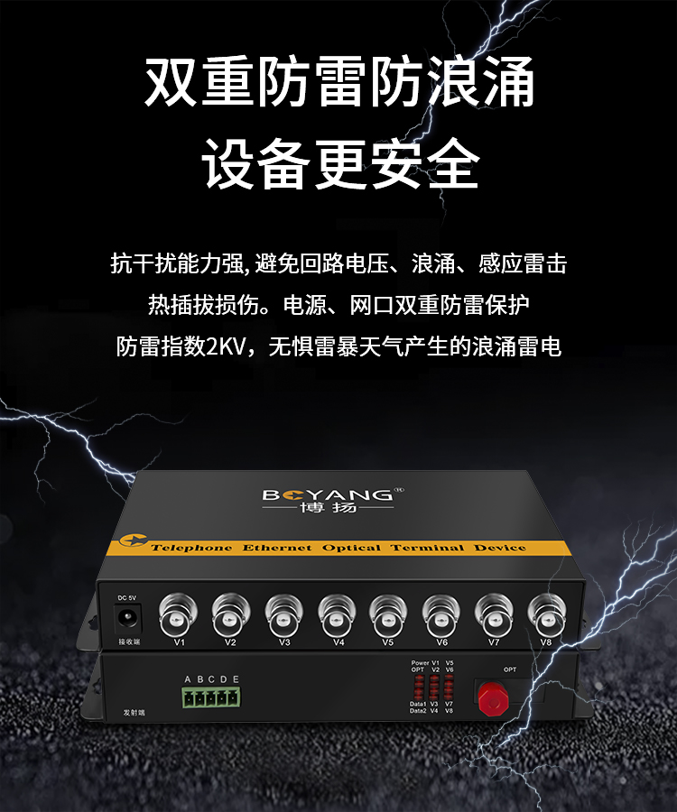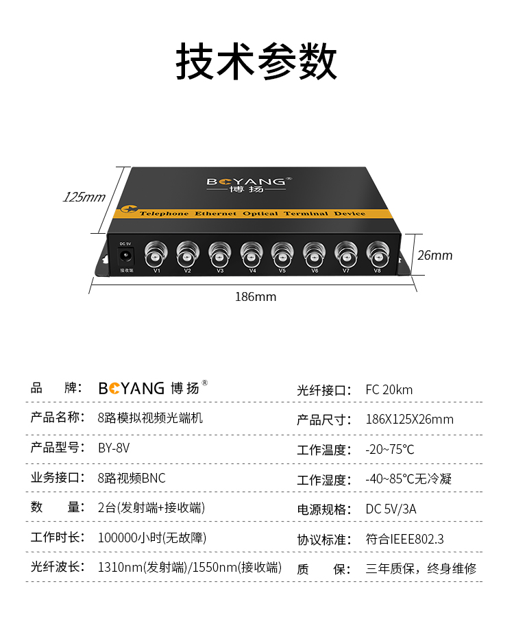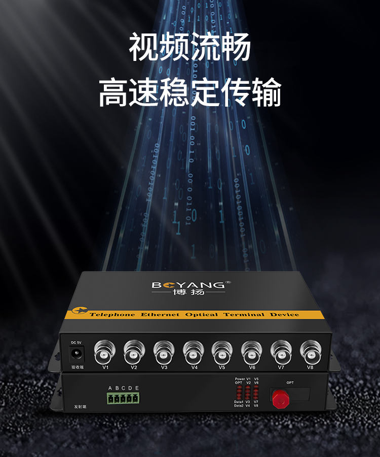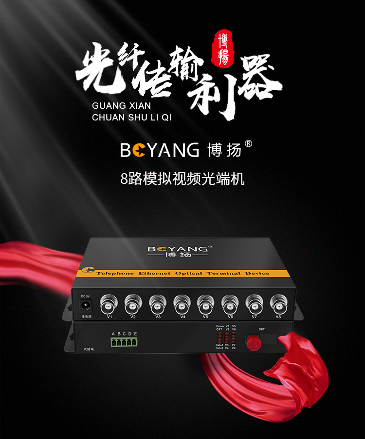 博扬(BOYANG)模拟视频光端机8路视频 光纤收发器延长器 单纤单模FC接口 1对 BY-8V 黑色