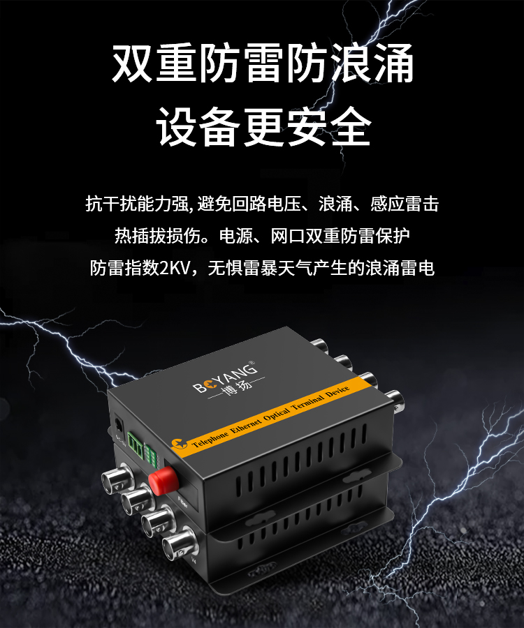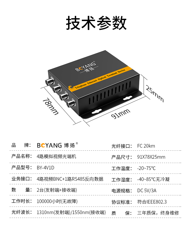 博扬(BOYANG)模拟视频光端机4路视频+1路485反向数据 光纤收发器延长器 单纤单模FC接口 黑色