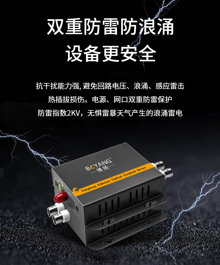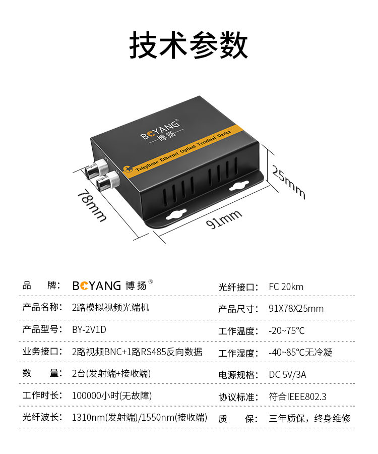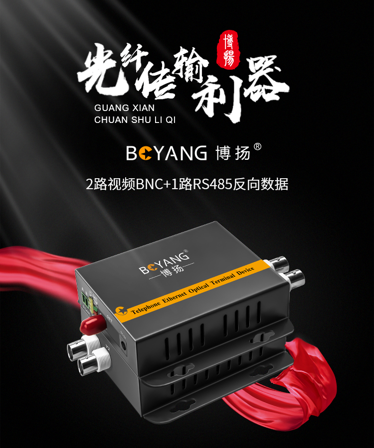 博扬(BOYANG)模拟视频光端机2路视频+1路485反向数据 光纤收发器延长器 单纤单模FC接口 黑色