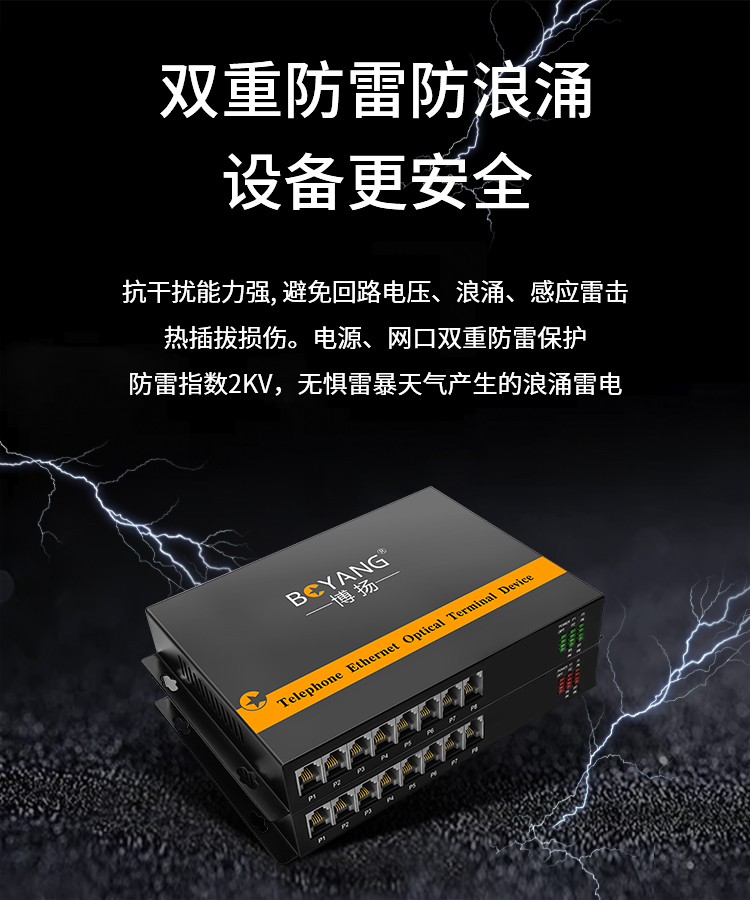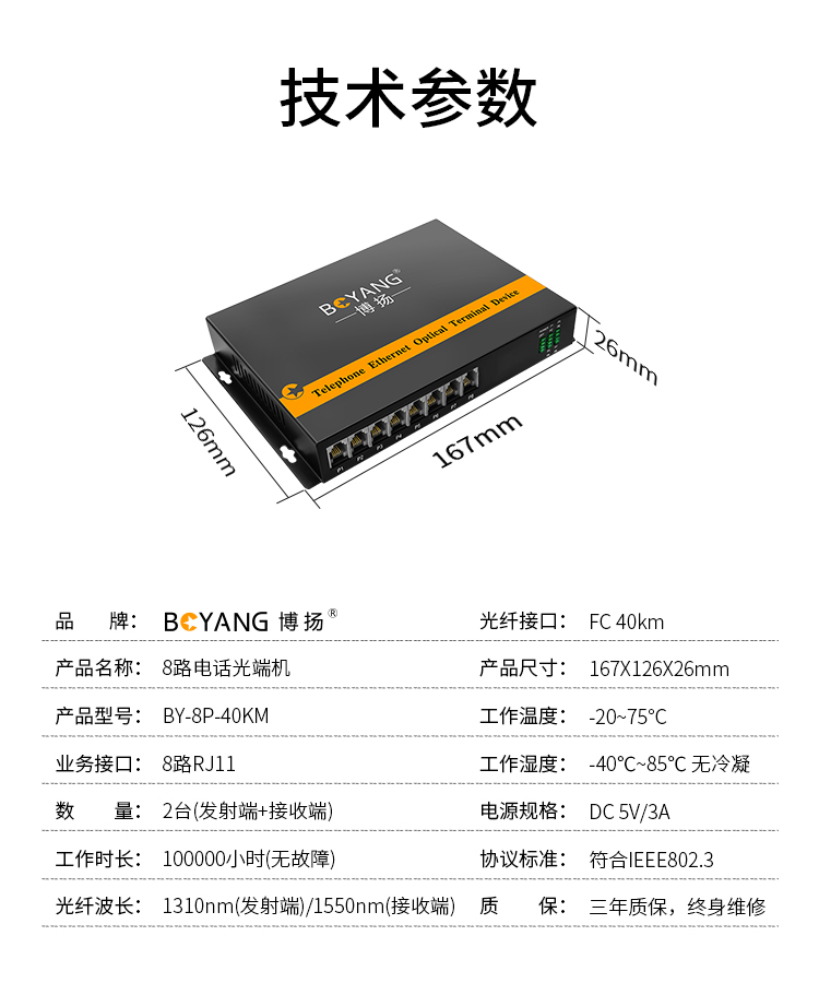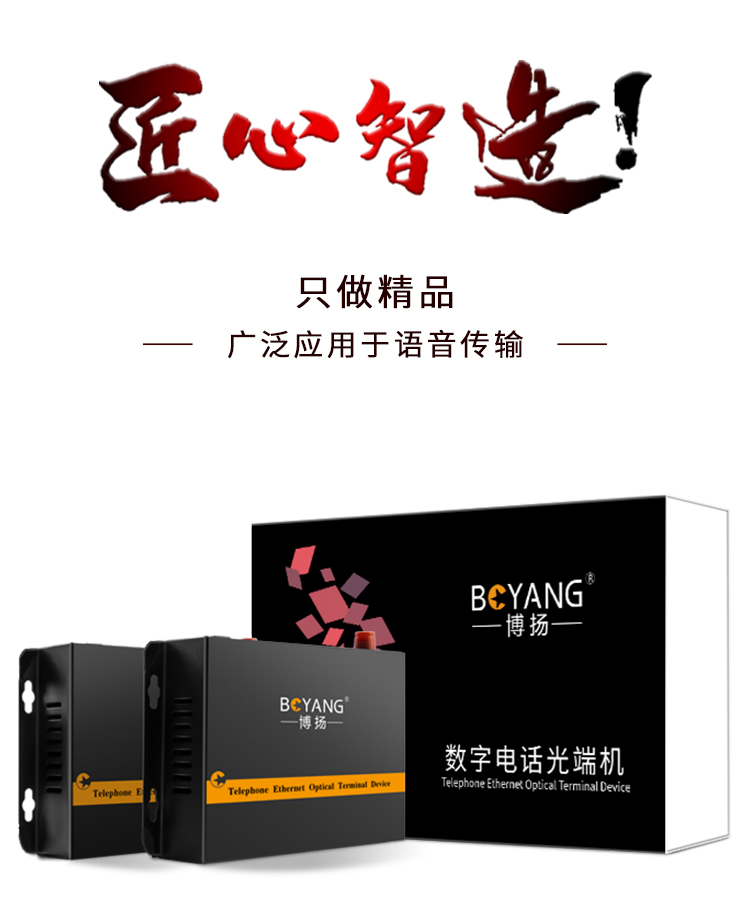 博扬(BOYANG)数字电话光端机8路纯电话音 对讲音频 光纤传输 FC接口 1对 40KM 黑色