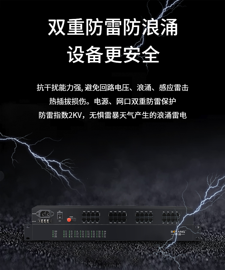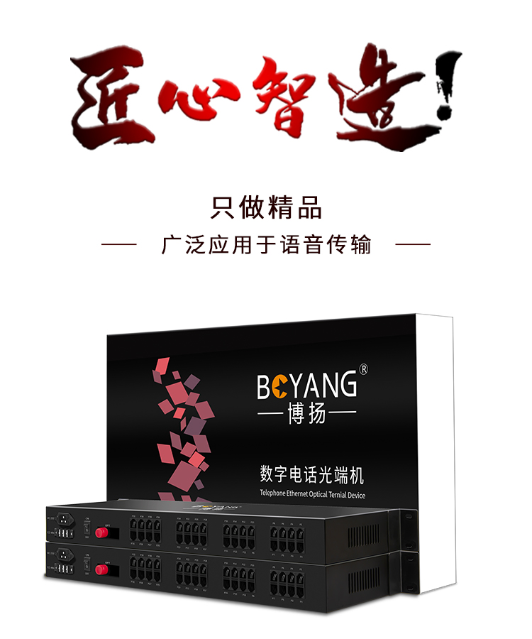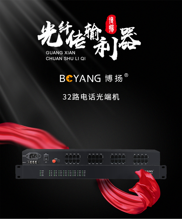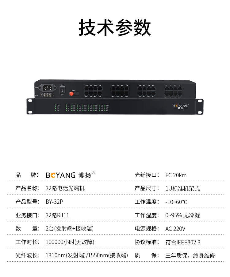 博扬(BOYANG)纯电话光端机 32路电话 RJ11接口 FC单纤机架式 1对价 BY-32P 黑色