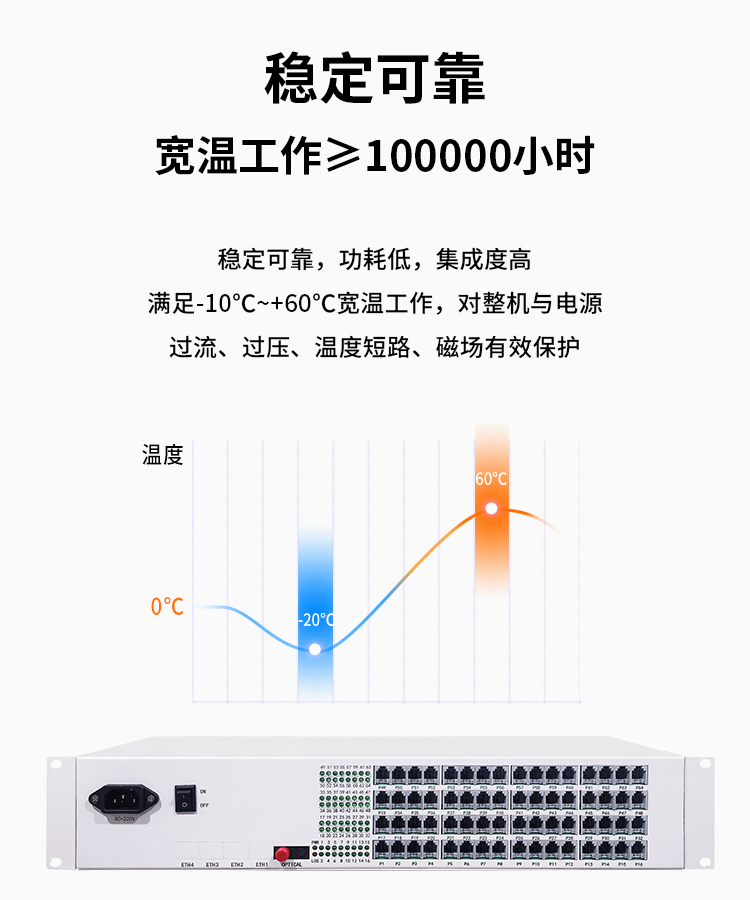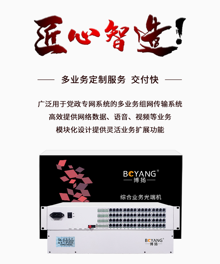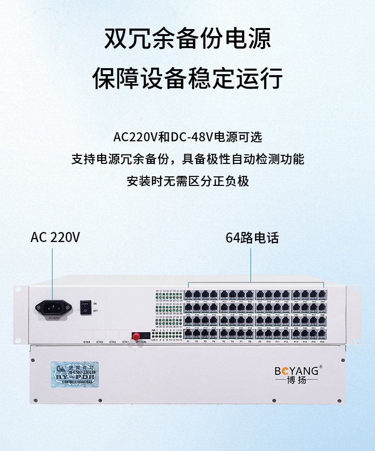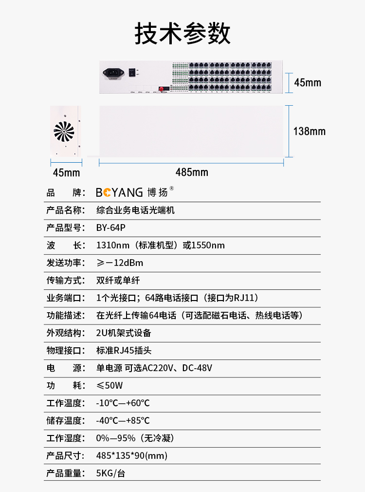 博扬 电话光端机 64路纯电话 RJ11接口 FC双纤机架式单电源 1对价 BY-64P 黑色