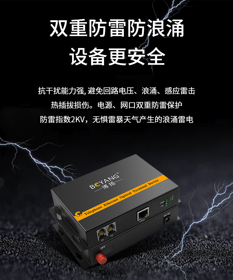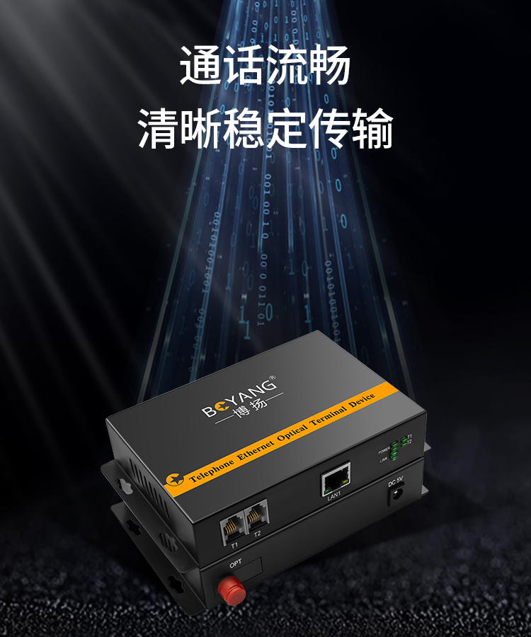 博扬(BOYANG)电话光端机 2路电话语音+1路网络 对讲音频加1路以太网 光纤传输FC接口 1对 黑色