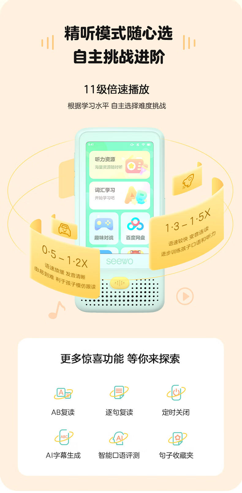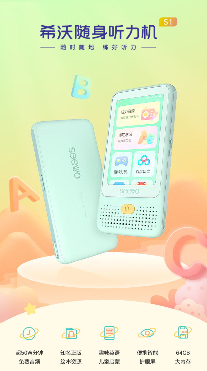 希沃随身听力机S1仙野绿 英语随身听英语听力学习机 智能学习机口语听力练习机分级听说机/个 仙野绿
