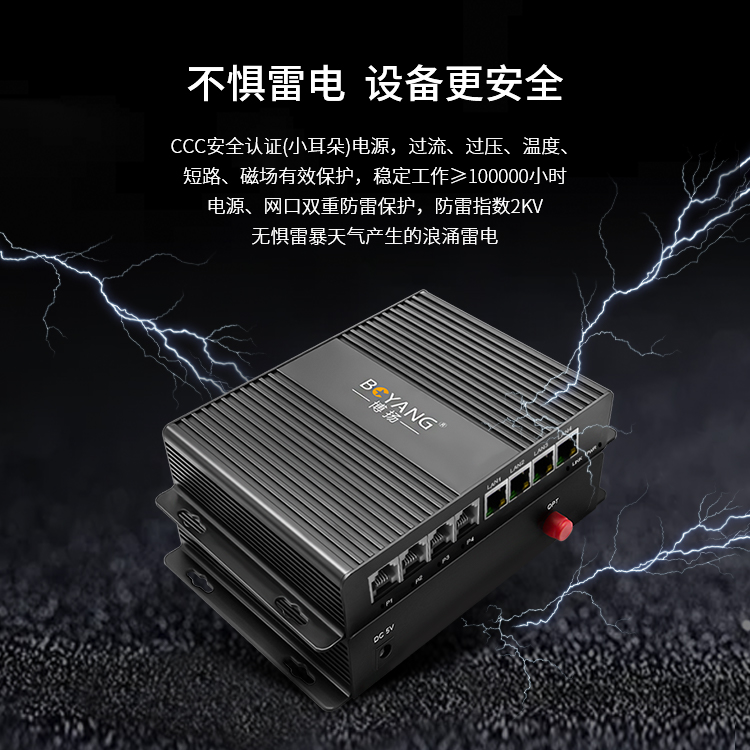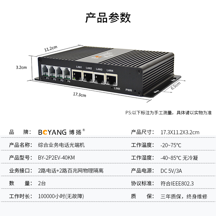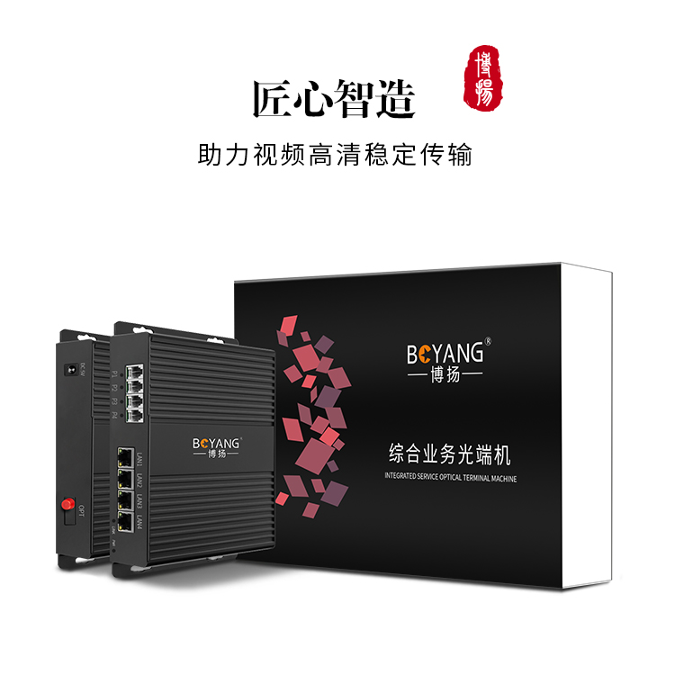 博扬 综合业务电话光端机 2路电话+2路百兆网物理隔离 40KM 1对价BY-2P2EV-40KM 黑色
