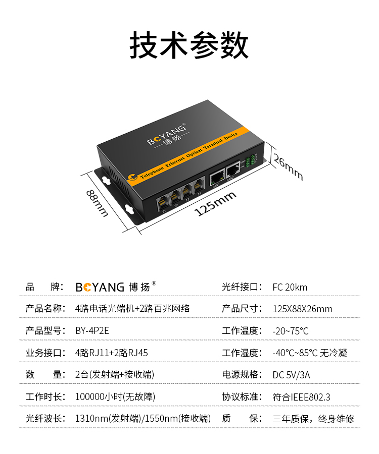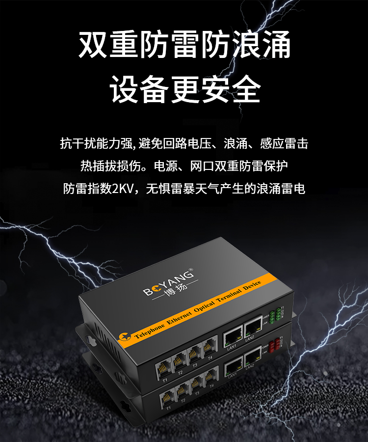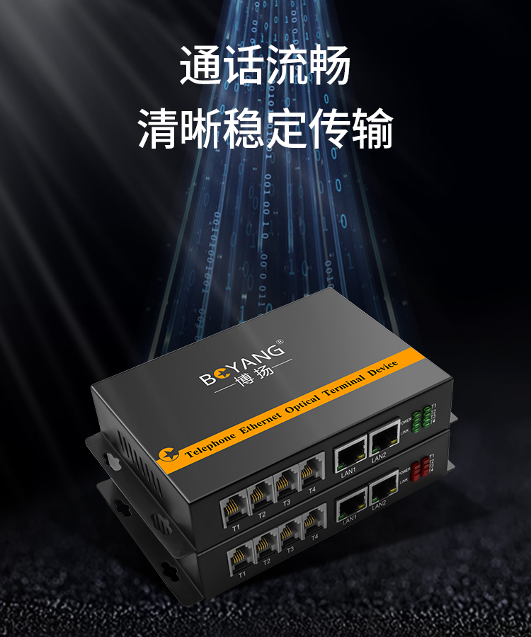 博扬(BOYANG)电话光端机4路电话语音+2路百兆网络 对讲音频加以太网光纤传输FC接口 1对 黑色