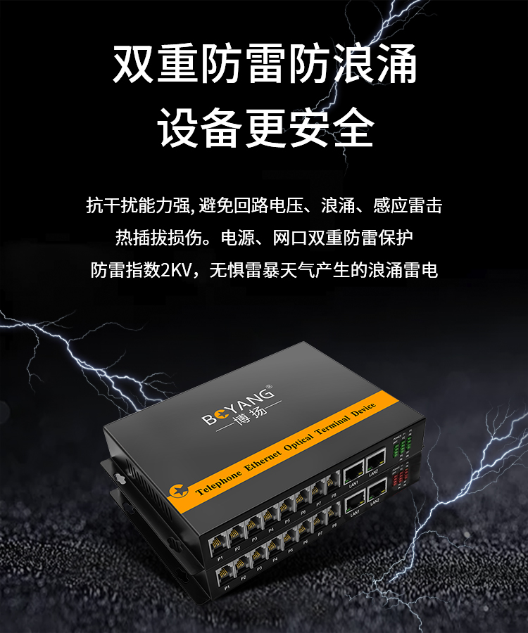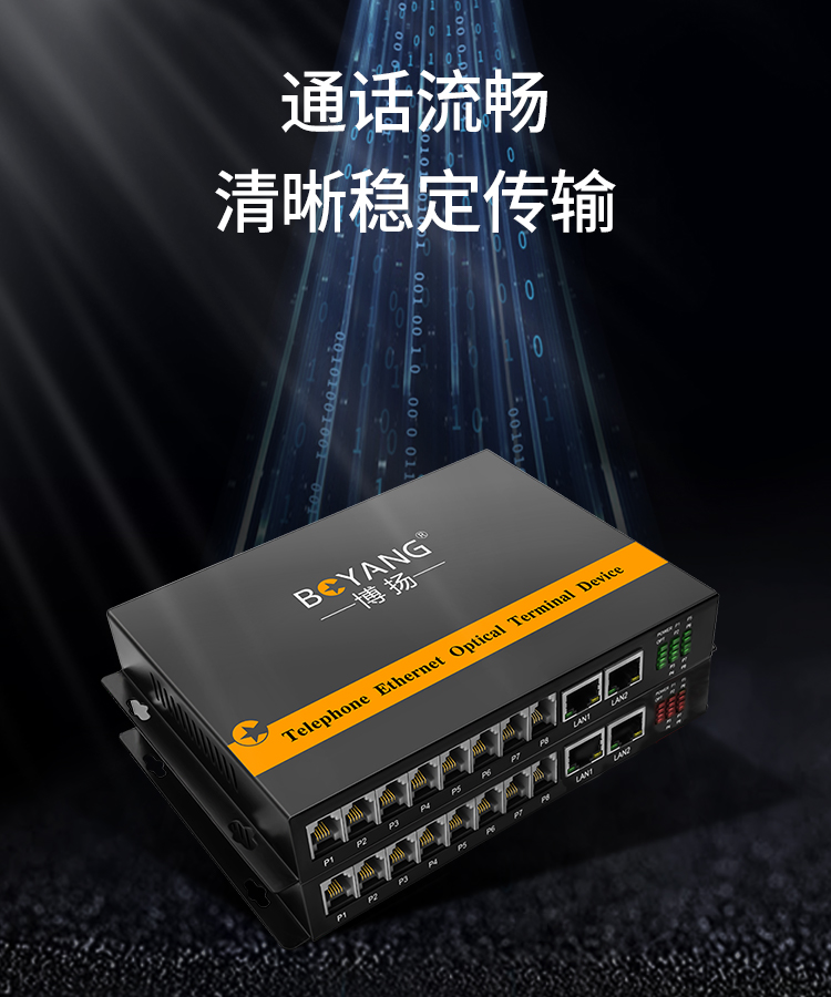 博扬(BOYANG)电话光端机8路电话+2路千兆网络 8路对讲语音+2路千兆以太网光纤传输 FC接口 黑色