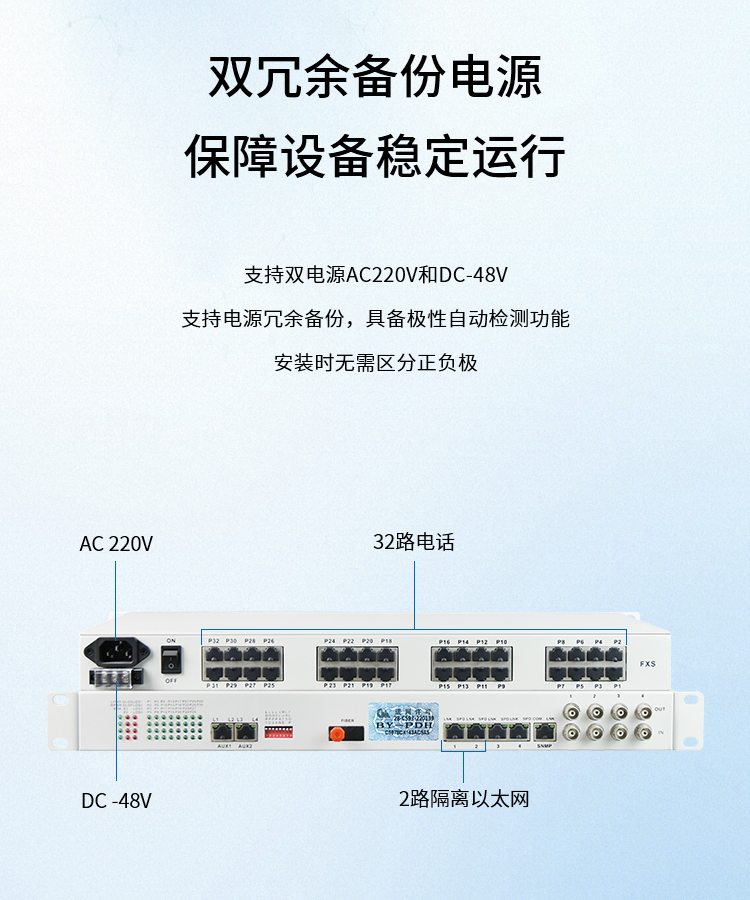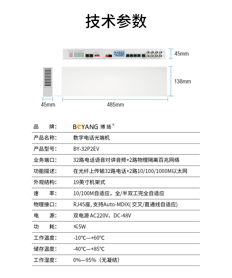 博扬(BOYANG) 电话光端机32路电话语音对讲音频+2路物理隔离百兆网络 FC接口机架式 1对 白色