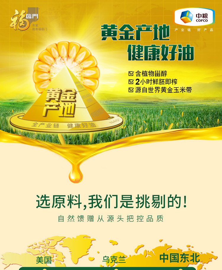 福临门 食用油 非转基因 压榨一级 黄金产地玉米胚芽油1.8L(单位:桶) 黄色