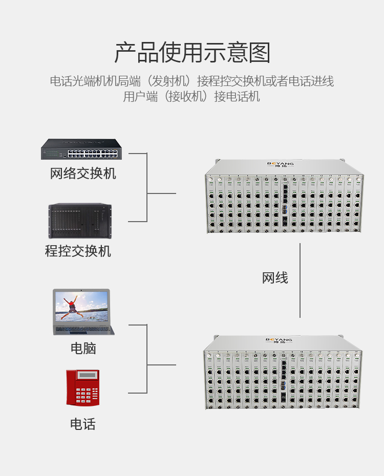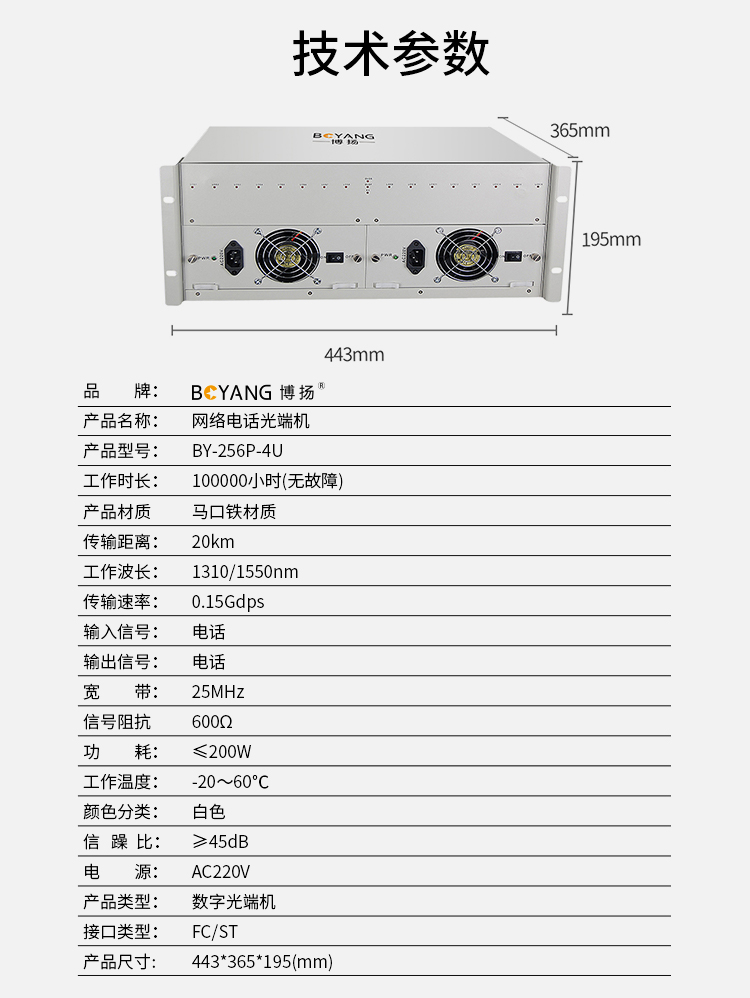 博扬(BOYANG) 电话光端机256路电话语音对讲音频 4U机框插卡式单模单纤 FC接口 1对 白色