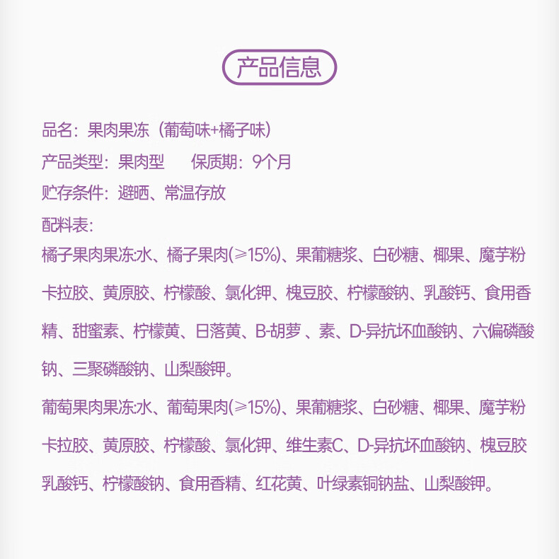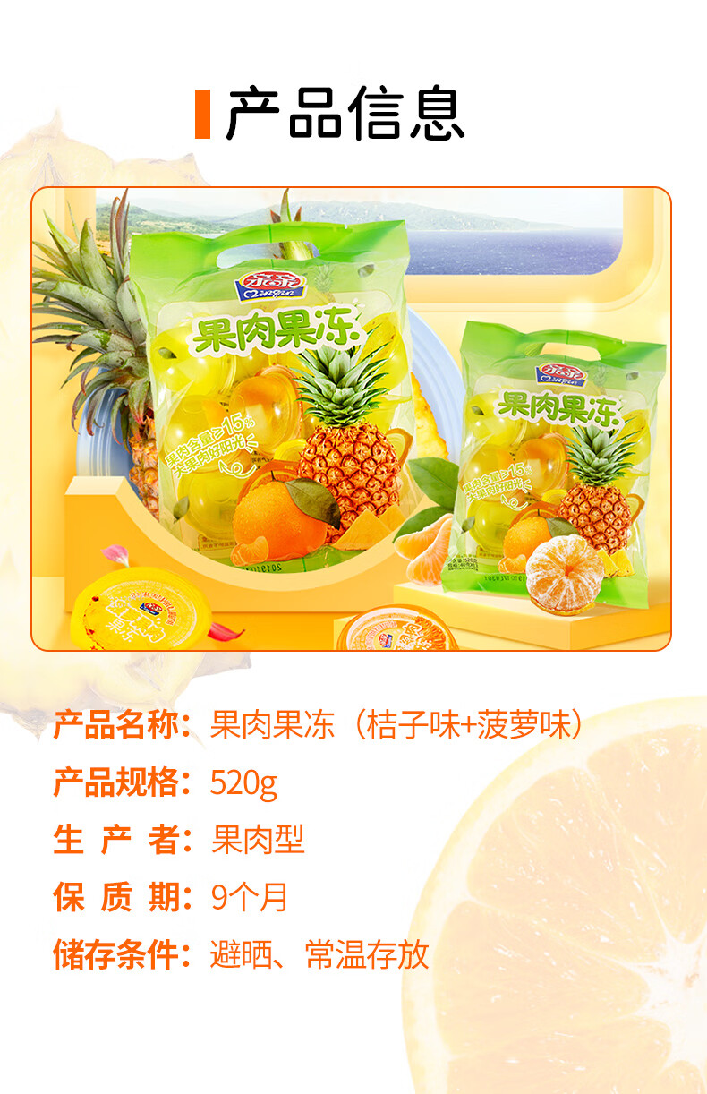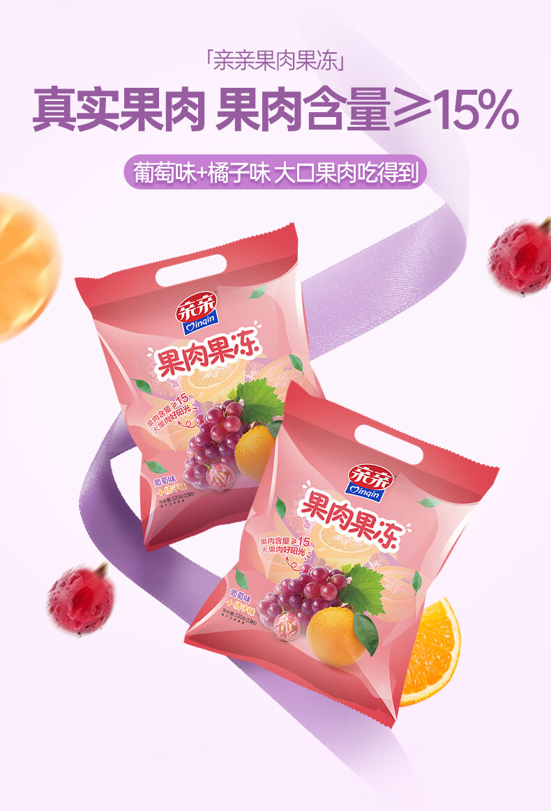 亲亲果冻520g*2袋橘子味+菠萝味(单位:袋) 紫色橘子味+葡萄味