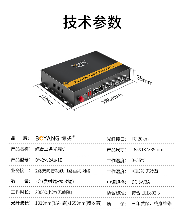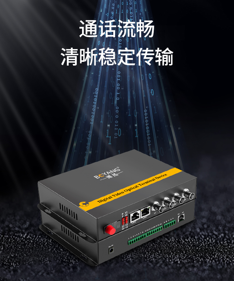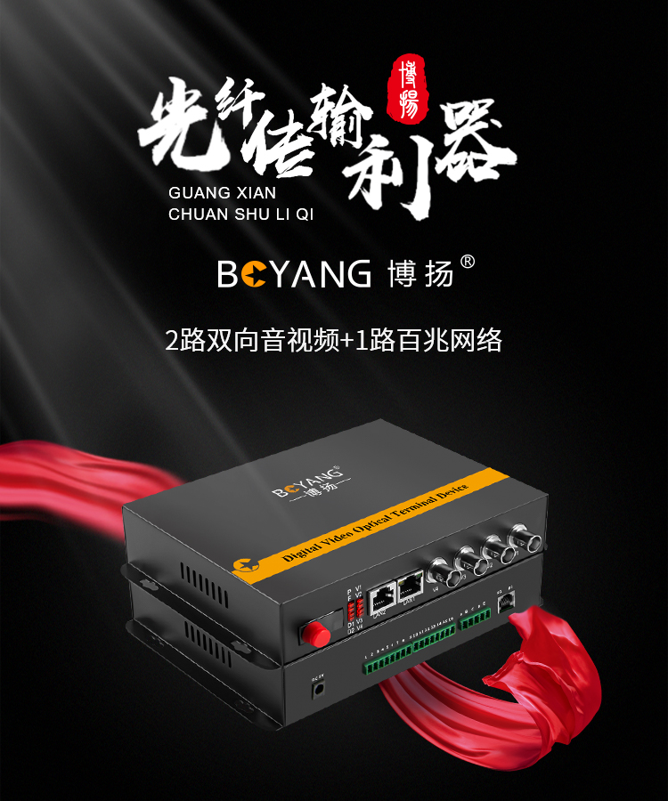博扬(BOYANG)多功能综合业务光端机 2路双向音视频+1路百兆以太网 单模单纤20km 1对 黑色