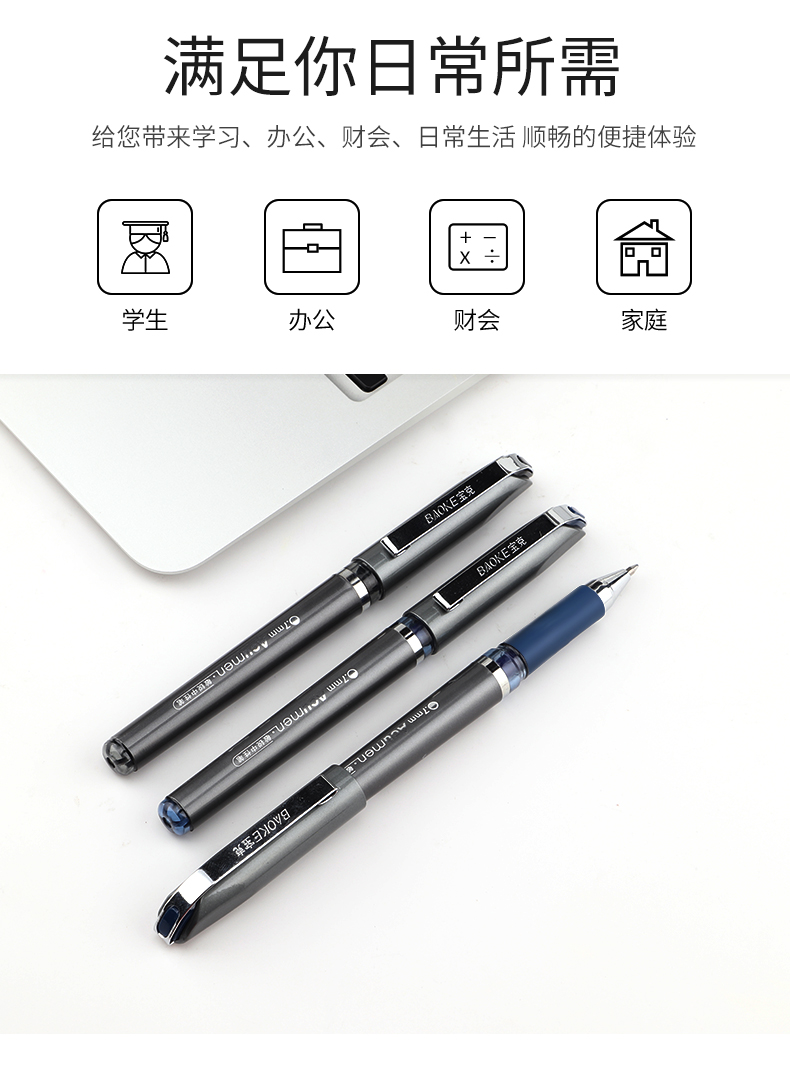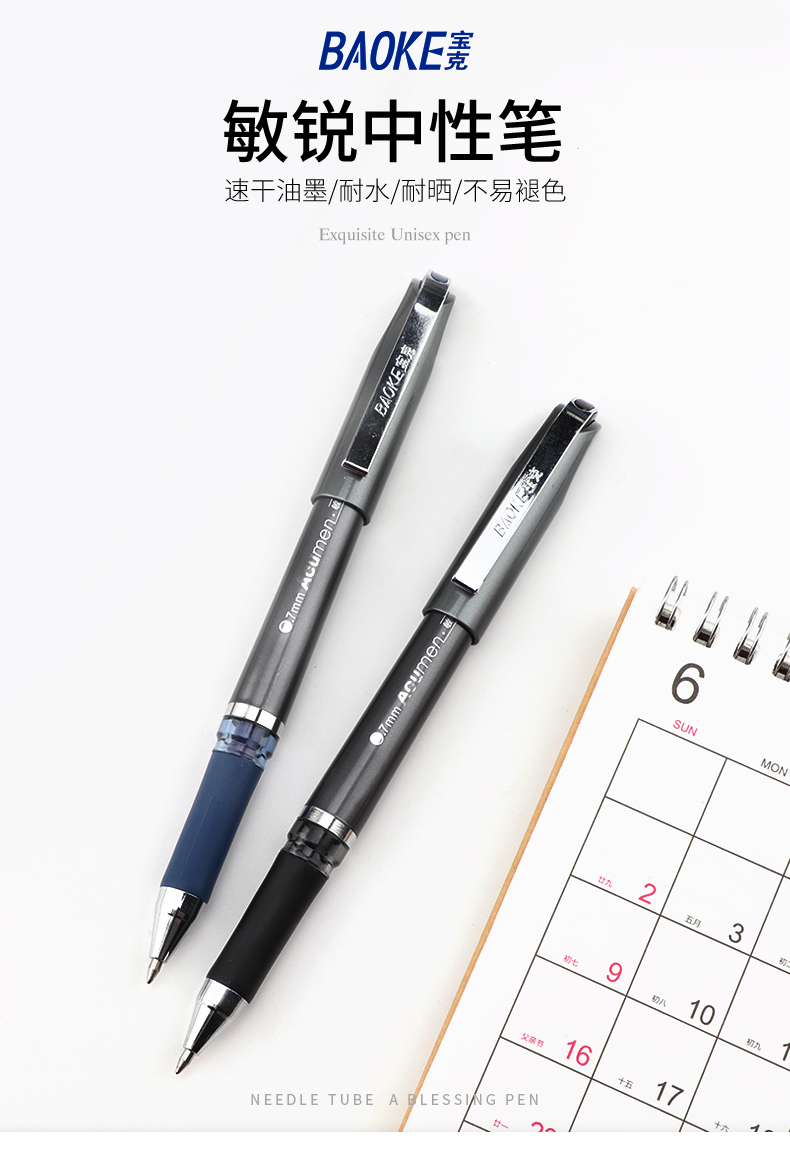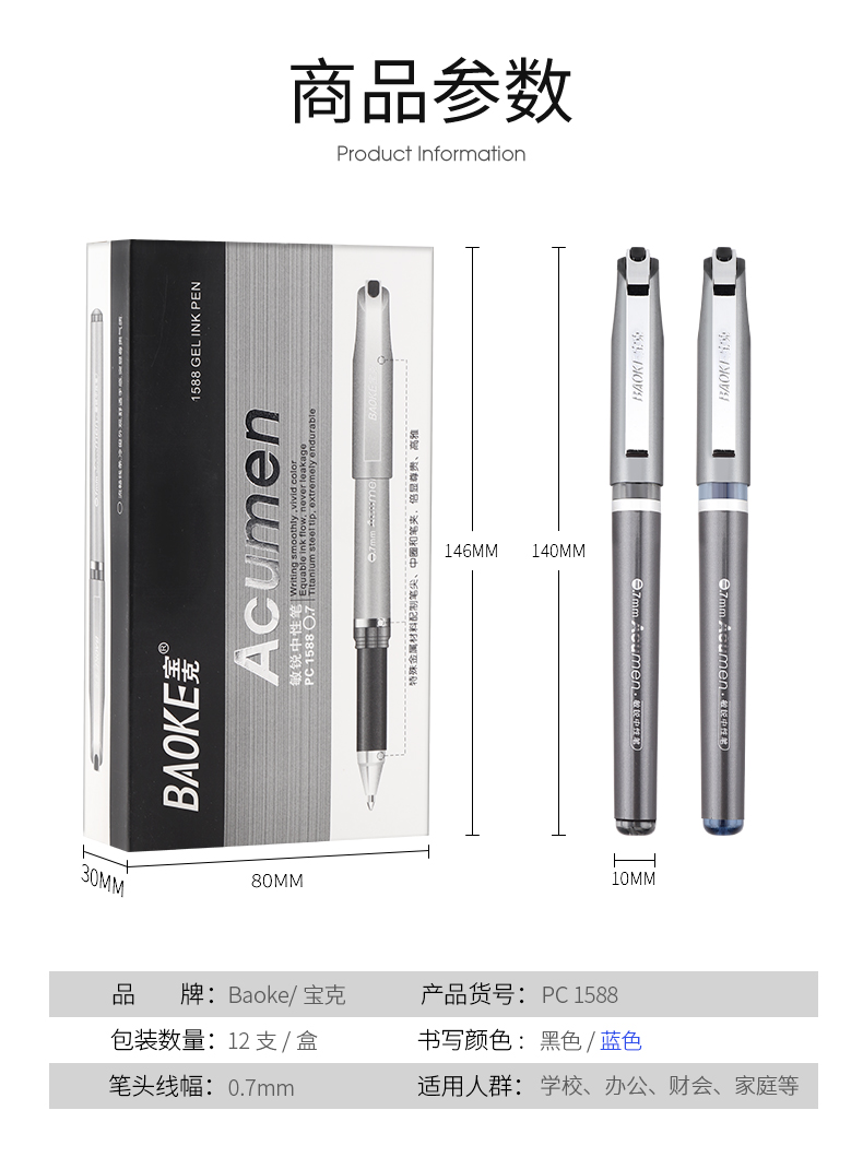 宝克(BAOKE)PC1588 0.7mm敏锐中性笔办公水笔商务签名笔 黑色 12支/盒 曜石黑