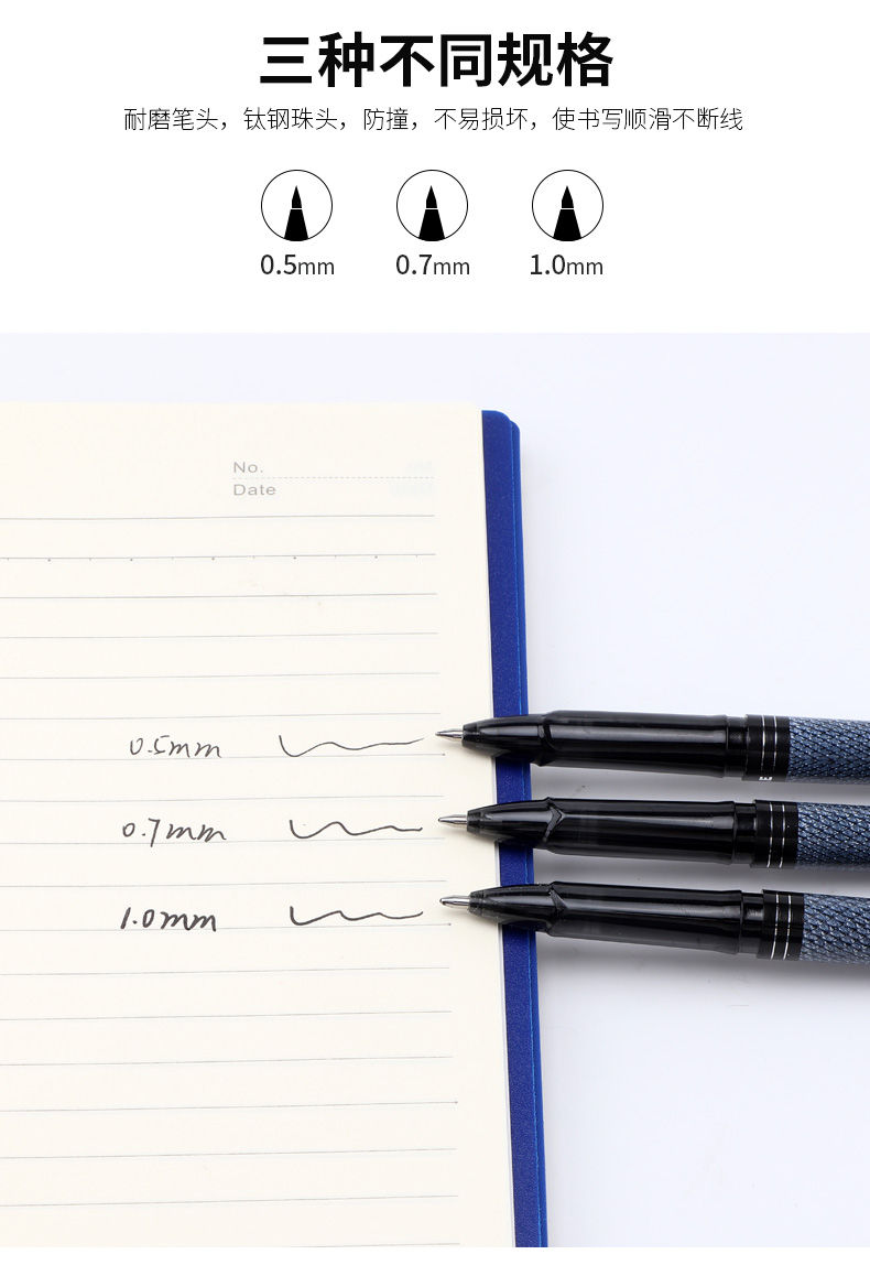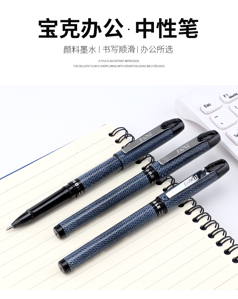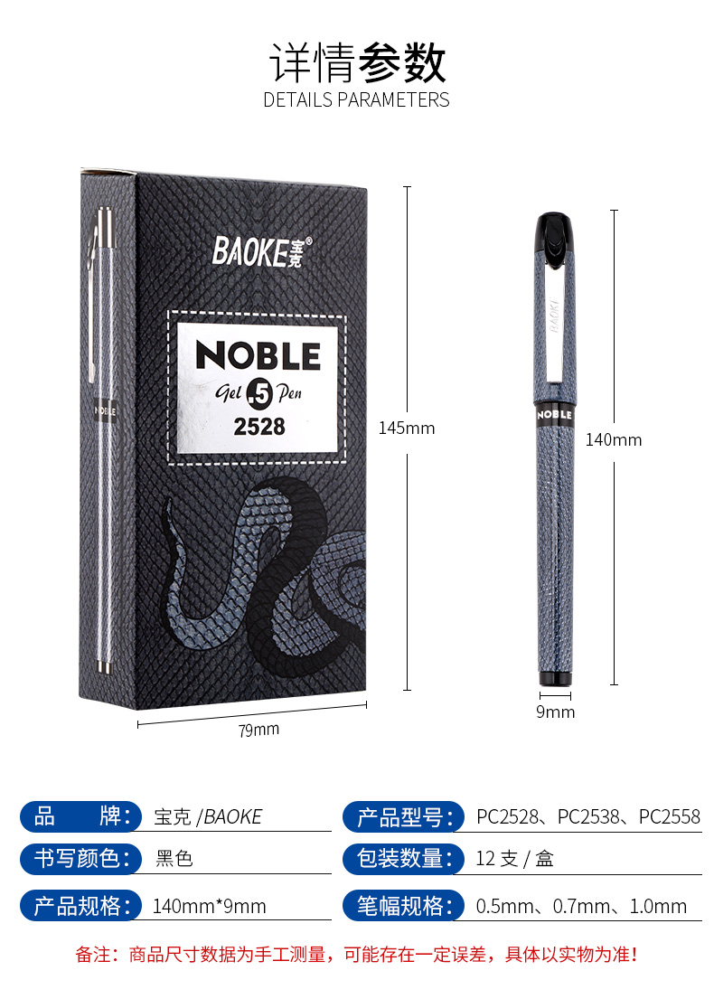 宝克(BAOKE)PC2528 黑色大容量 0.5mm中性笔签名笔水笔 12支/盒 曜石黑