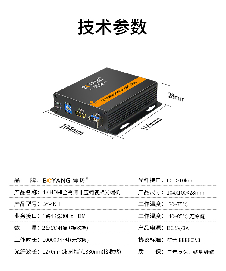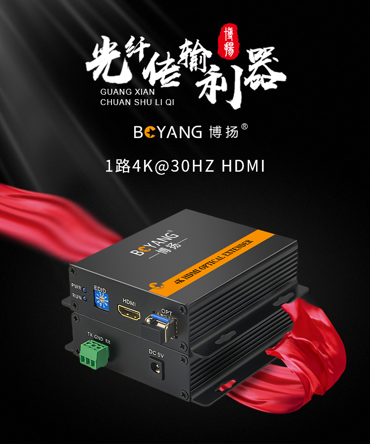 博扬(BOYANG) 非压缩4K HDMI视频光端机1路视频 HDMI延长器转换器 一对 黑色