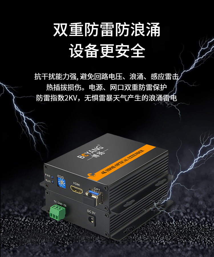 博扬(BOYANG) 非压缩4K HDMI视频光端机1路视频+RS232 HDMI延长器 一对 黑色