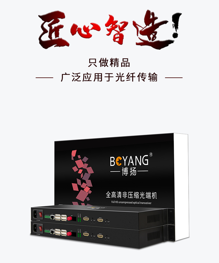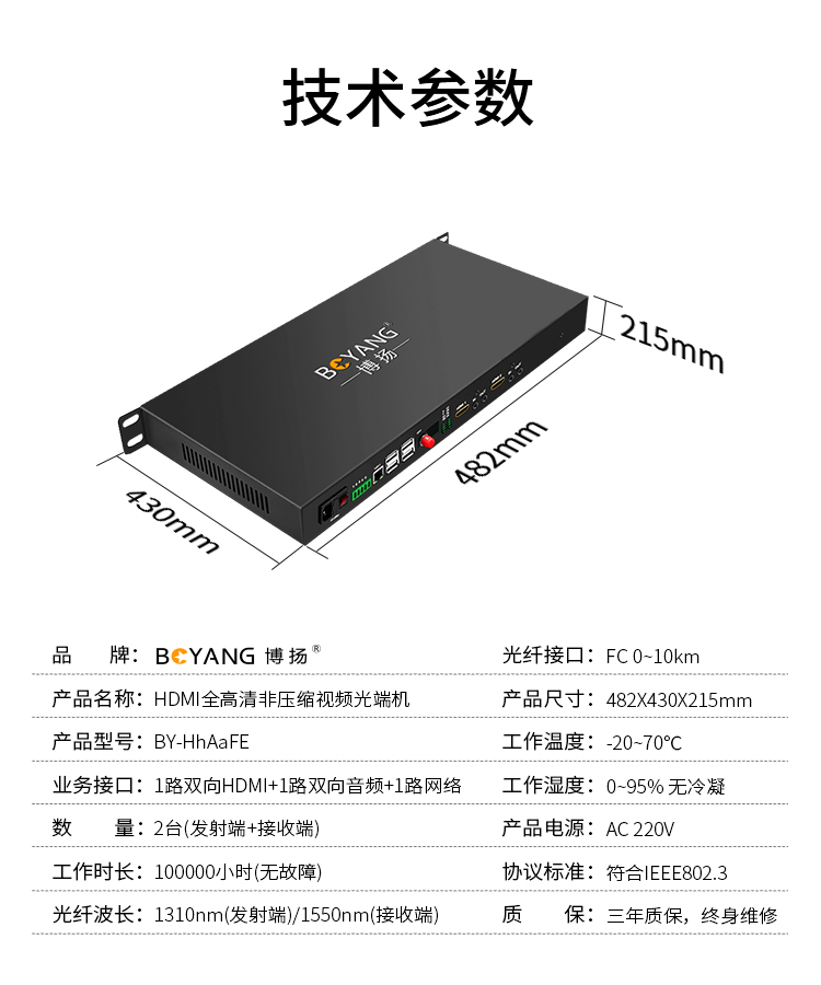 博扬(BOYANG)非压缩全高清HDMI视频光端机 1路双向HDMI+1路双向音频+1路网络 机架式 黑色