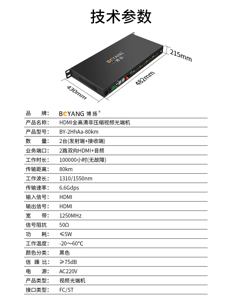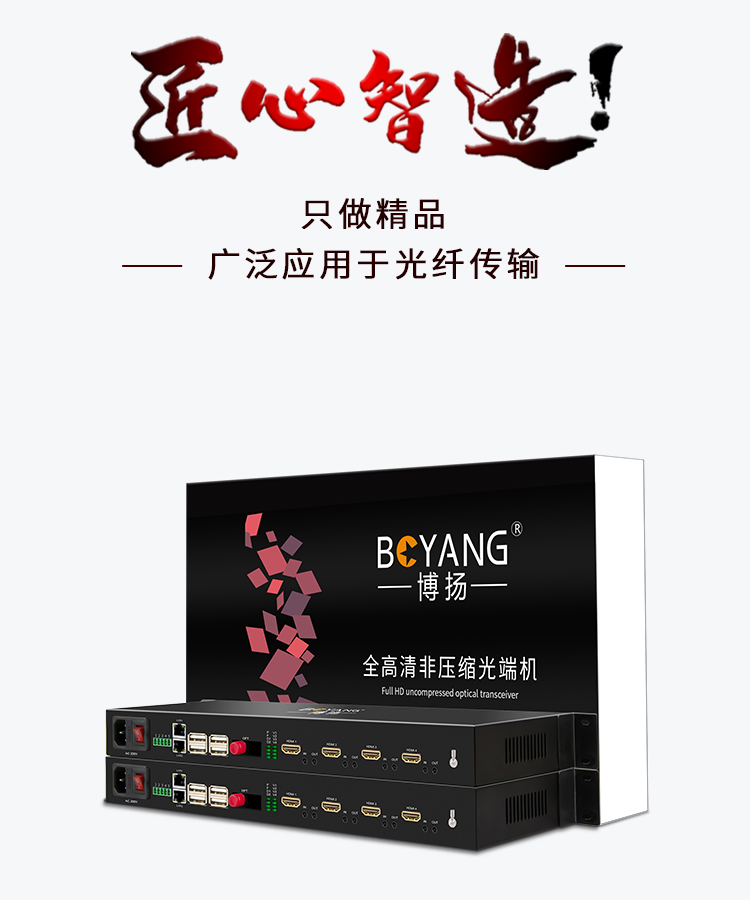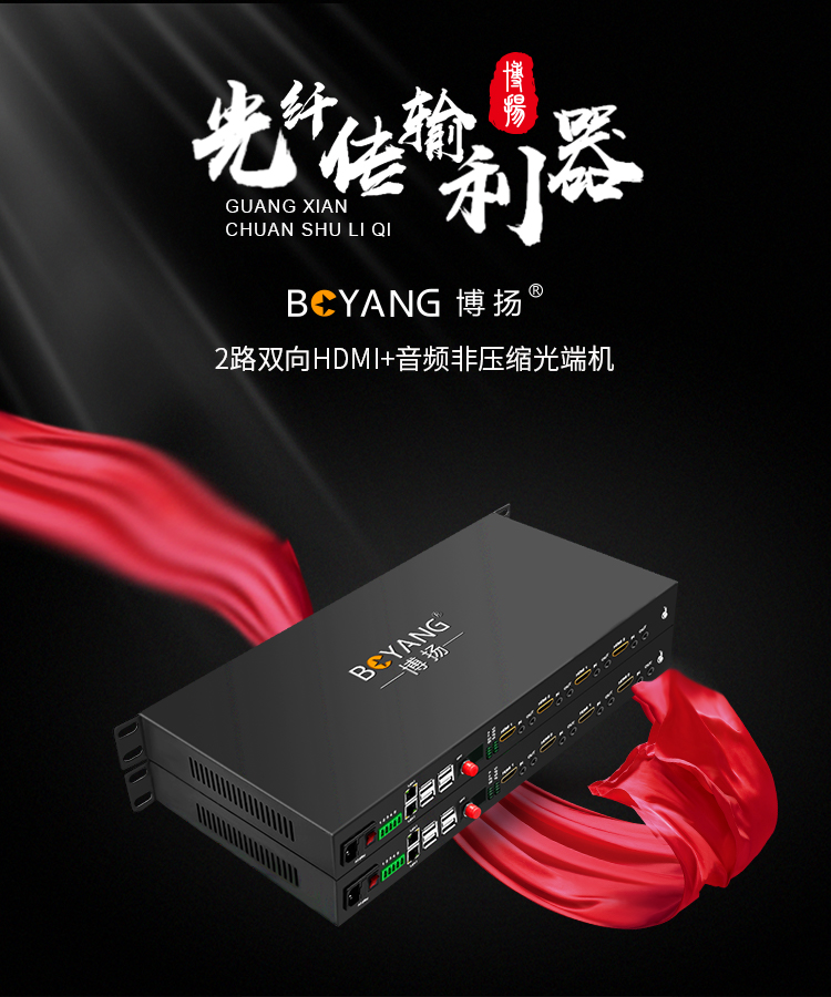 博扬 两路双向HDMI光端机 带音频非压缩 80公里 1对价 BY-2HhAa-80km 黑色