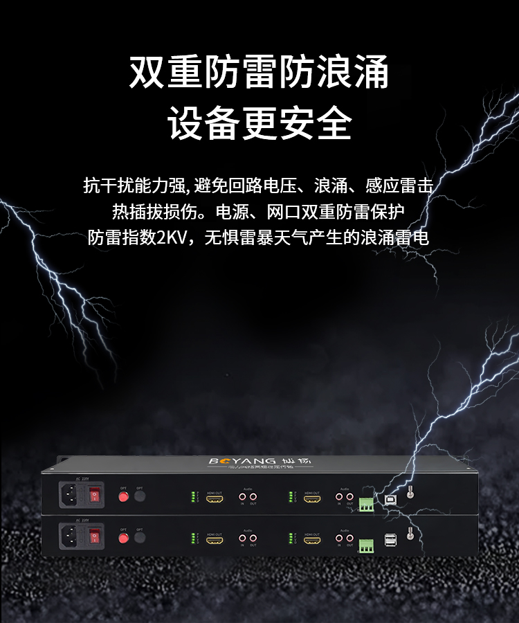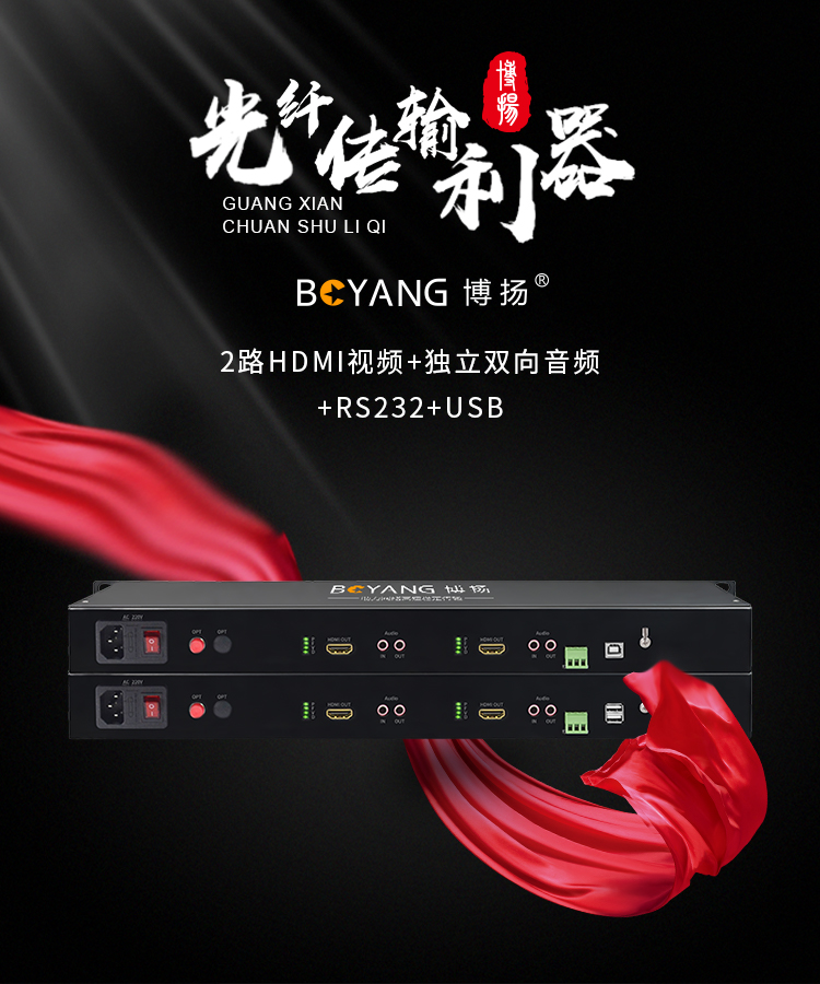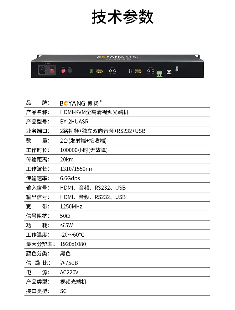 博扬(BOYANG) HDMI-KVM视频光端机 2路HDMI视频+独立双向音频+RS232+USB 黑色
