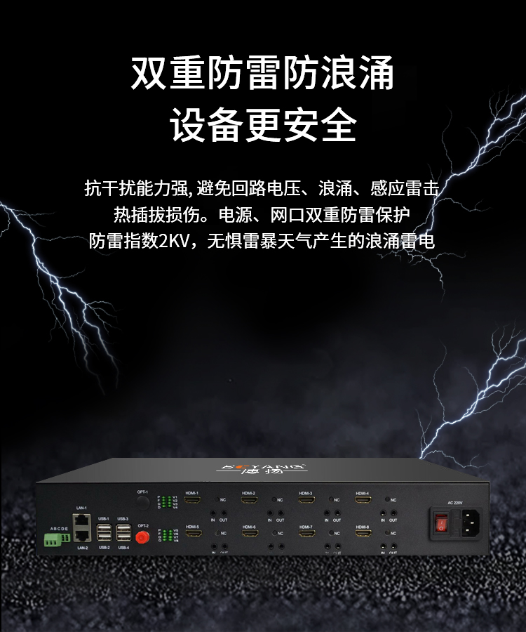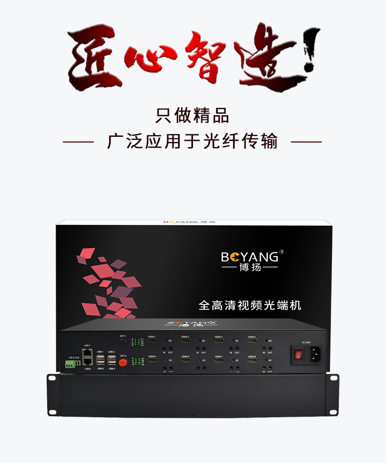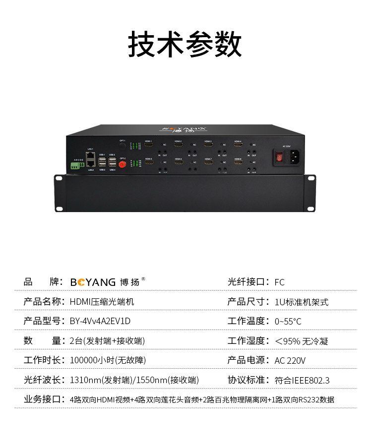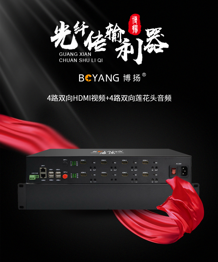博扬 多业务光端机 4路双向HDMI视频+4路双向RCA音频+2路百兆物理隔离+1路RS232数据 黑色