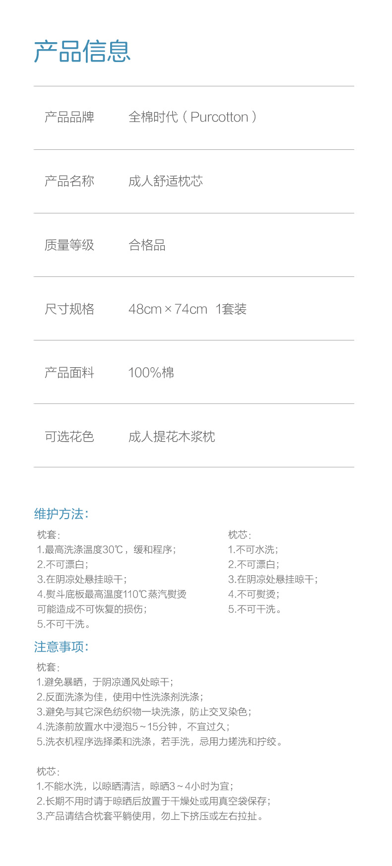 全棉时代 成人提花木浆枕 48cm×74cm 1个装 白色
