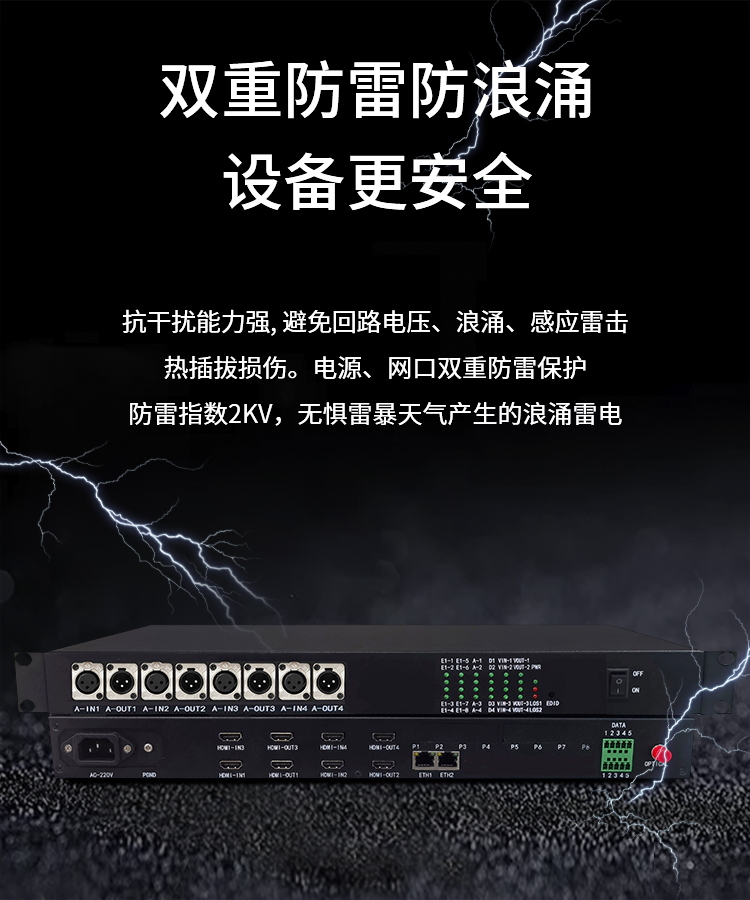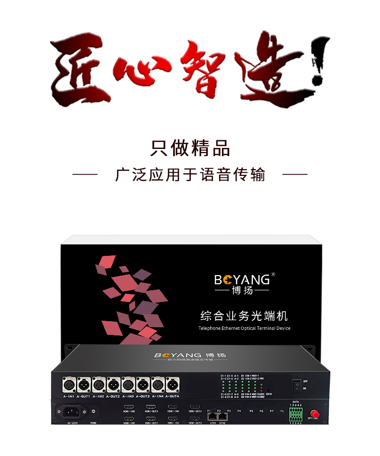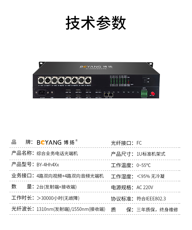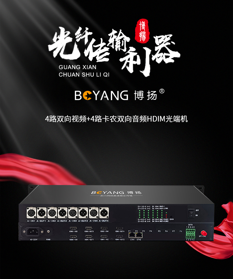 博扬 视频会议专用光端机 音视频光端机 4路双向HDMI视频+4路XLR卡侬平衡音频 1对价 黑色