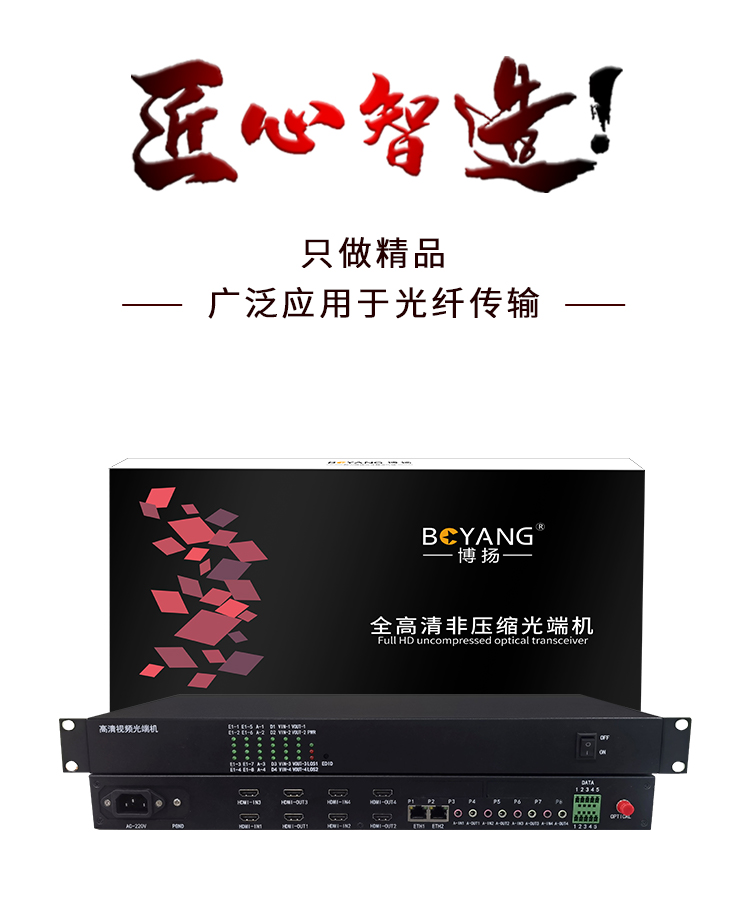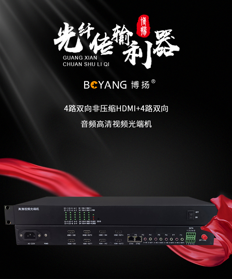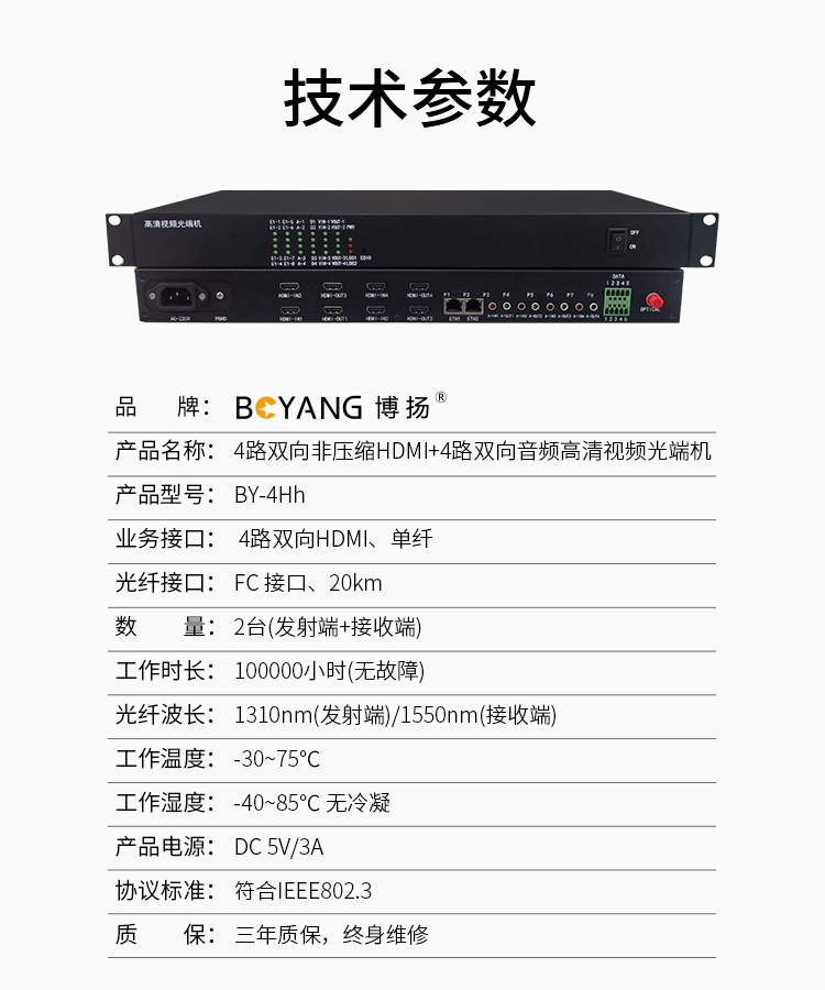 博扬 非压缩4路双向HDMI光端机 单纤20公里 1对价 BY-4Hh 黑色