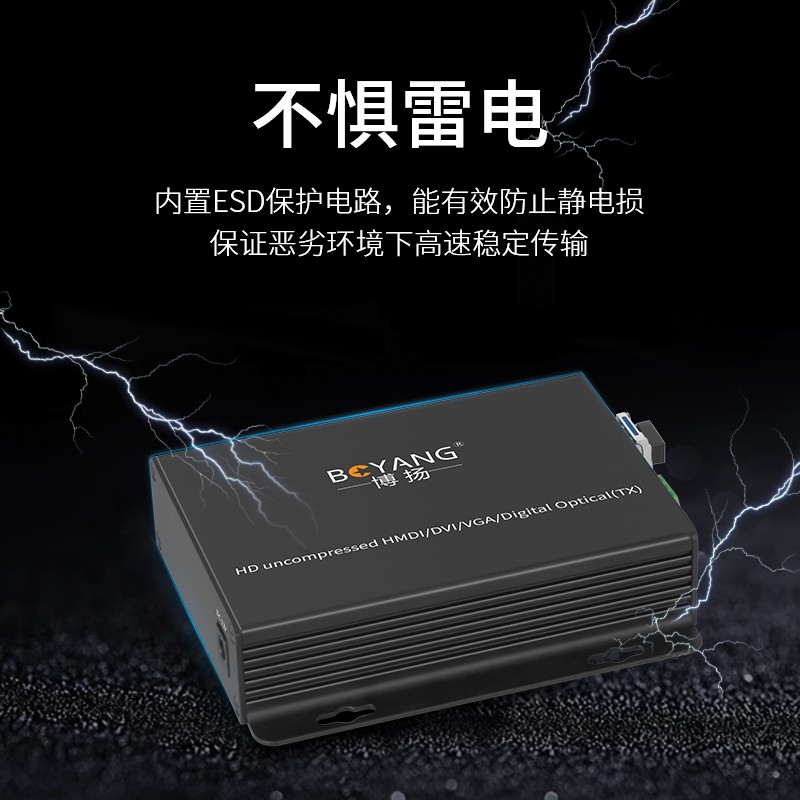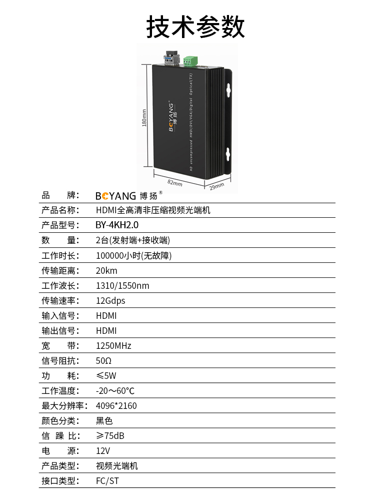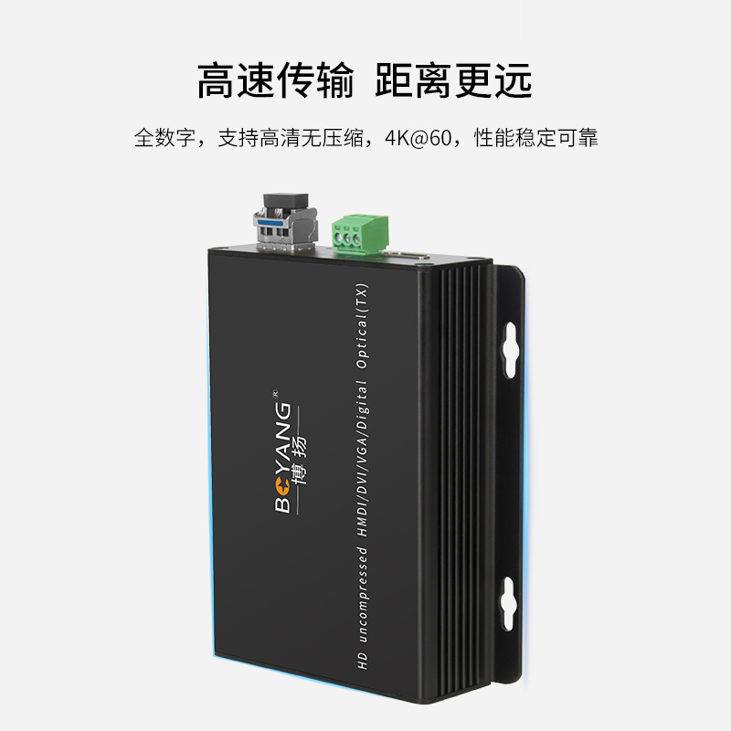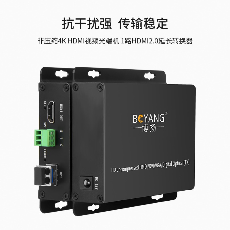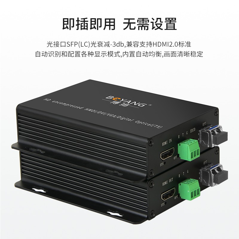 博扬 非压缩4K HDMI视频光端机 4096*2160P@60Hz 1路HDMI2.0延长器转换器 黑色