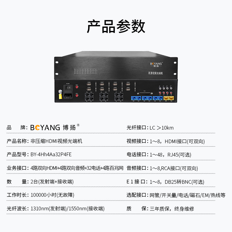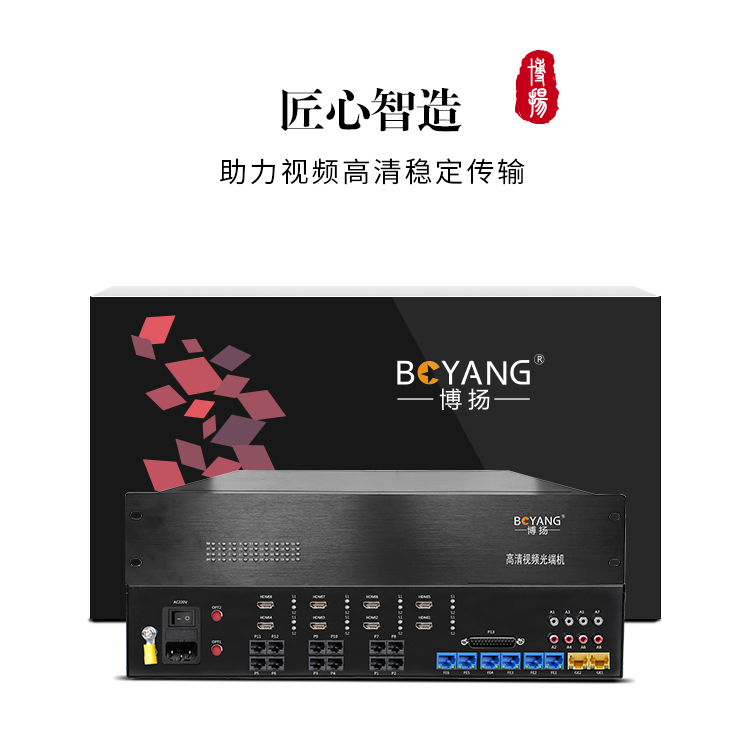 博扬 非压缩HDMI视频光端机 4路双向HDMI+4路双向音频+32电话+4路百兆网 20km双纤 黑色