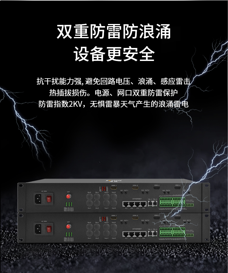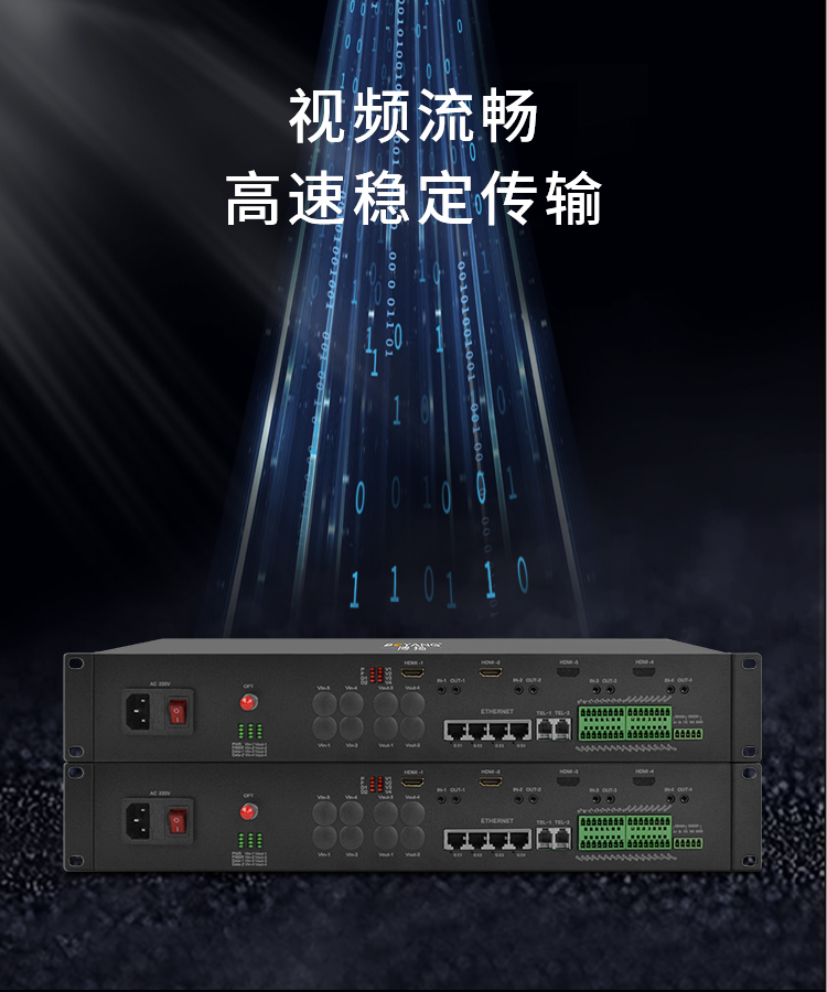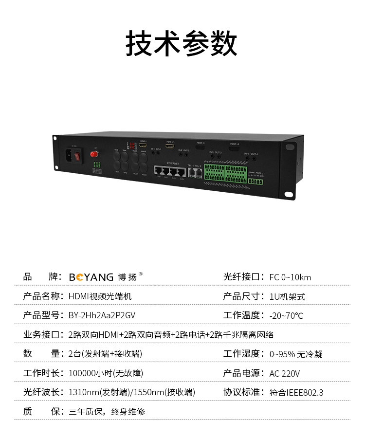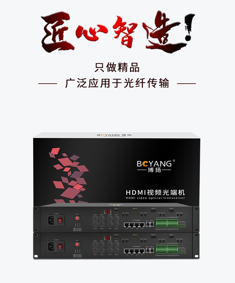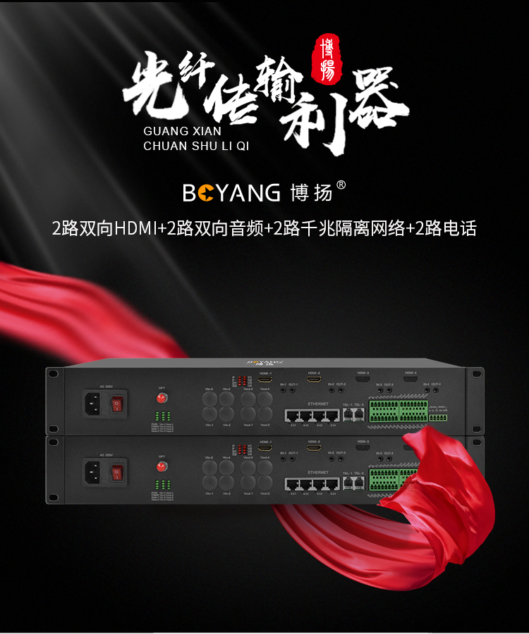 博扬 HDMI视频光端机 2路双向HDMI+2路双向音频+2路电话+2路千兆隔离网络 机架式一对 黑色
