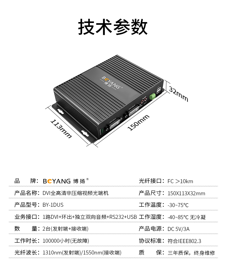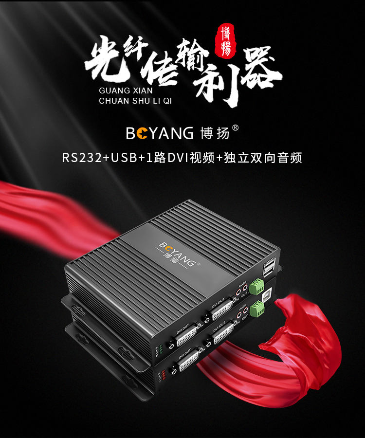 博扬(BOYANG) 非压缩全高清DVI视频光端机1路视频+环出+独立双向音频+RS232+USB 黑色